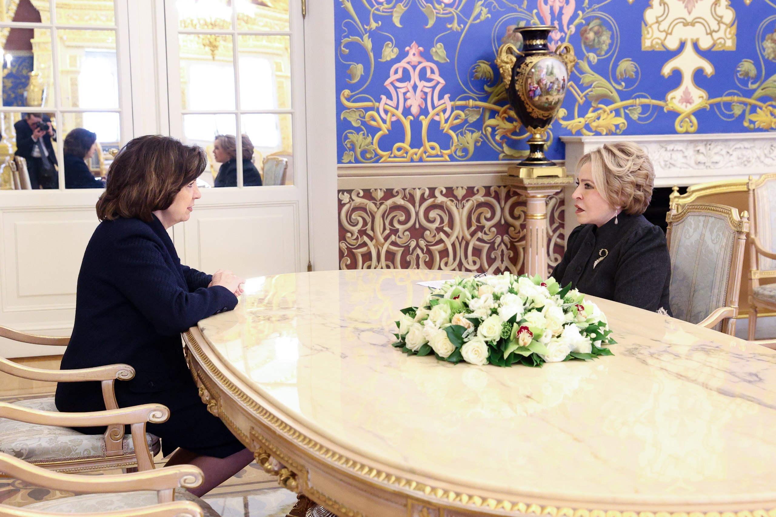 Председатель Совета Республики Национального собрания Республики Беларусь Наталья Кочанова и председатель Совета Федерации Федерального собрания Российской Федерации Валентина Матвиенко обсудили участие парламентариев в реализации повестки Союзного государства, сообщили БЕЛТА в пресс-службе верхней палаты парламента.Беседа председателя Совета Республики и председателя Совета Федерации состоялась в Москве в ходе заседания Высшего государственного совета Союзного государства. В ходе беседы спикеры затронули вопросы подготовки XIII Форума регионов Беларуси и России. Наталья Кочанова и Валентина Матвиенко также уделили внимание проведению этим летом культурно-образовательного проекта "Поезд Памяти". Проект стартовал в 2022 году по инициативе глав верхних палат парламентов Беларуси и России и в этом году пройдет в пятый раз.