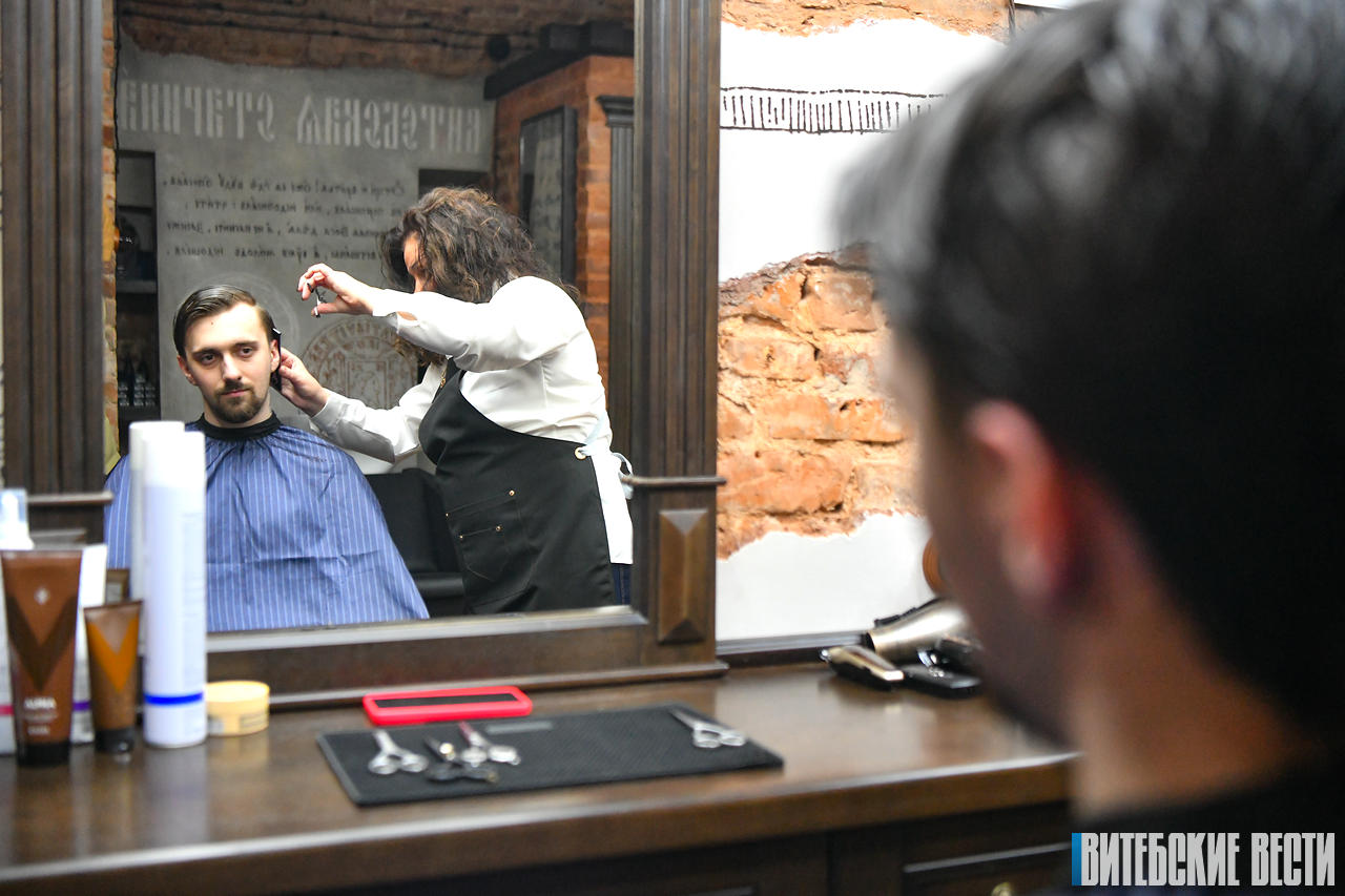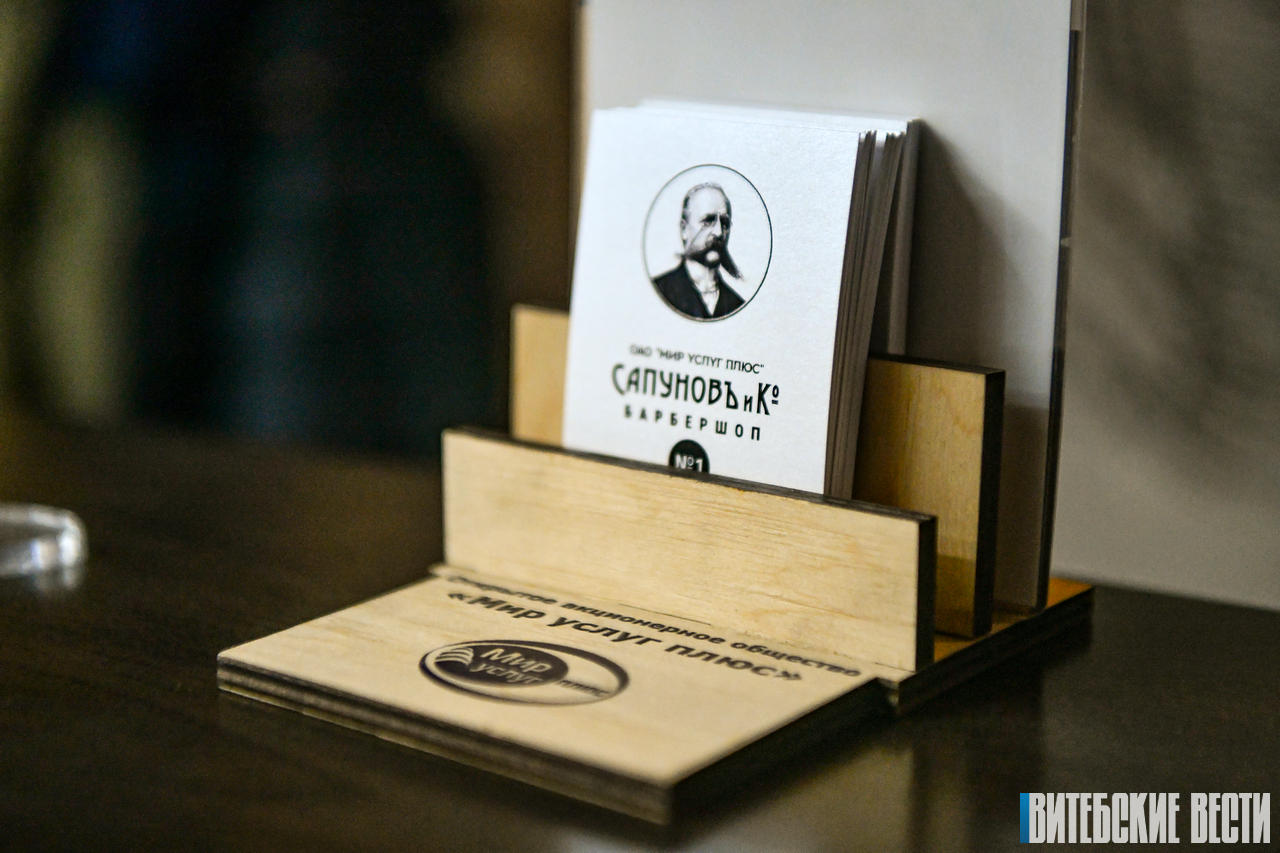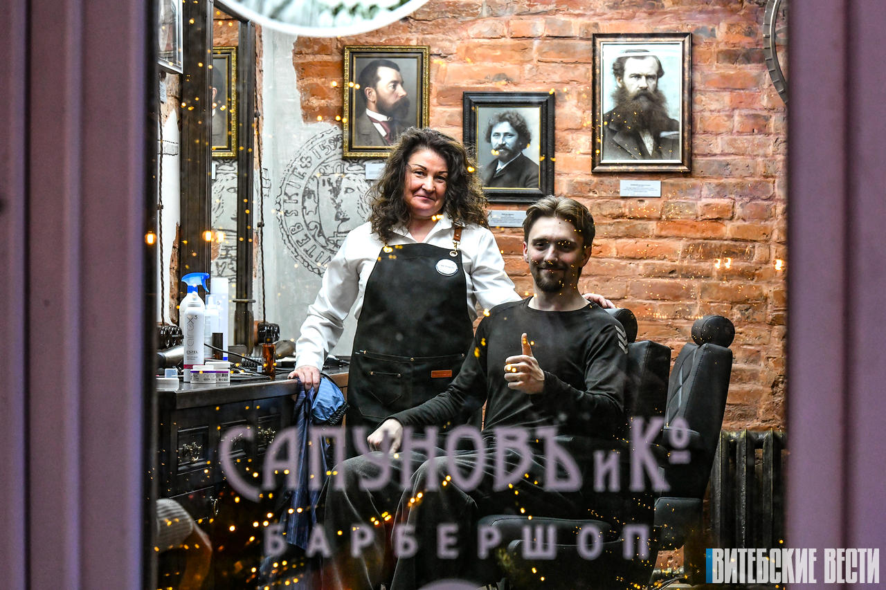– Работать над созданием барбершопа начали в 2024 году, – рассказал директор ОАО «Мир услуг плюс» Николай Орлов. – В рамках республиканского субботника удалили всю обшивку помещения, и нашему взору открылся старый кирпич (здание, по данным технического паспорта, относится к строениям до XIX века). Красота! Дань уважения Марку Захаровичу мы отдали, а этот салон назвали именем Алексея Сапунова, знатока старины, депутата Государственной думы ІІІ созыва от Витебской губернии и обладателя роскошных усов.