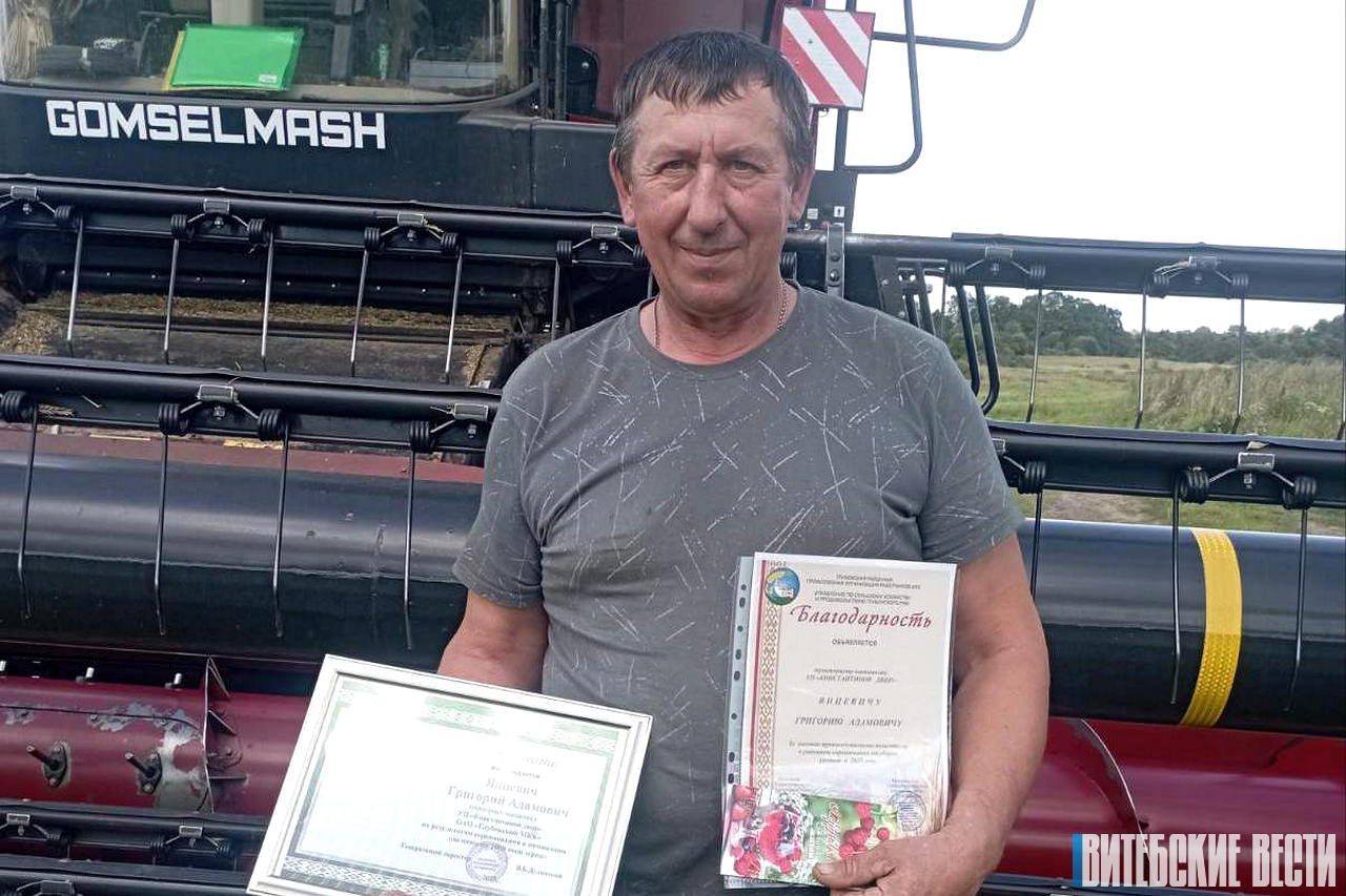 – Конечно, обновили парк, – подчеркивает руководитель. – За два последних года получили два новых комбайна, трактор, целенаправленно отрабатывали технологии выращивания различных культур. Но без старания механизаторов вряд ли бы что-то изменилось. В хозяйстве их не так много, и каждый заслуживает слов благодарности. Они пашут, сеют, заготавливают корма и убирают урожай, выполняют десятки других работ, без которых невозможна успешная организация сельскохозяйственного производства. Поэтому, когда подводим итоги, одни и те же фамилии часто фигурируют в числе победителей на разных видах работ. Григорий Янцевич, Виктор Зеленкевич каждый год задействованы на косьбе трав, в посевных кампаниях. С началом жатвы пересаживаются на комбайны и здесь показывают класс. Они первыми намолотили по тысяче тонн зерна. Григорий Янцевич в прошлом году получил Благодарность Президента. А мы в хозяйстве, учитывая опыт и профессионализм обоих тысячников, закрепили за ними новые комбайн и трактор.