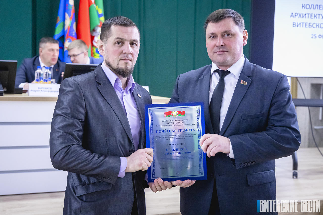 Официальную часть итоговой коллегии комитета по архитектуре и строительству облисполкома предваряла церемония награждения. Представителей сферы отметили за высокие профессиональные показатели, многолетний добросовестный труд и особый вклад в развитие строительной отрасли.