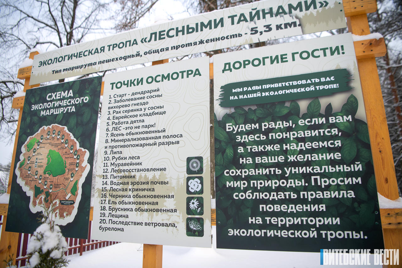 Здесь вас ждут удивительные открытия: вихорево гнездо, окопы-щели, лесная криничка, живописный мини-дендрарий. Кроме того, вы узнаете, что такое оз. Созданная в результате сотрудничества лесхоза, местных властей и туристического информационного центра, эта тропа уже завоевала любовь местных жителей, готовых исследовать ее достопримечательности даже в морозы.