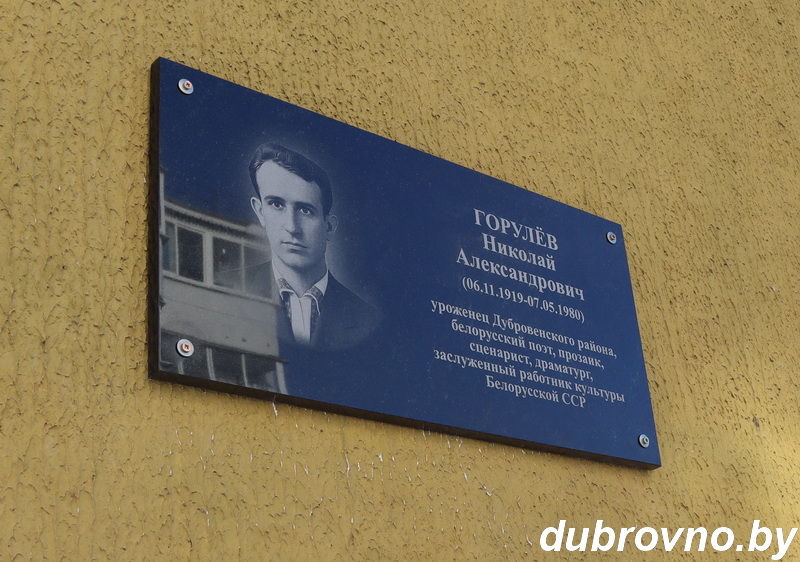 Мемориальную доску в память о заслуженном деятеле культуры БССР, русском, белорусском и советском поэте, прозаике и драматурге Николае Горулёве торжественно открыли в Дубровно на улице, которая носит его имя. В этом году талантливому автору исполнилось бы 107 лет. Но сколько бы времени ни прошло, память о нем всегда будет жить в тех строках, которыми он смог достучаться до многих сердец. Творчество Горулёва было, безусловно, востребовано временем. Он писал о Великой Отечественной войне, любви к Родине, дружбе, о стариках и детях, молодежи.