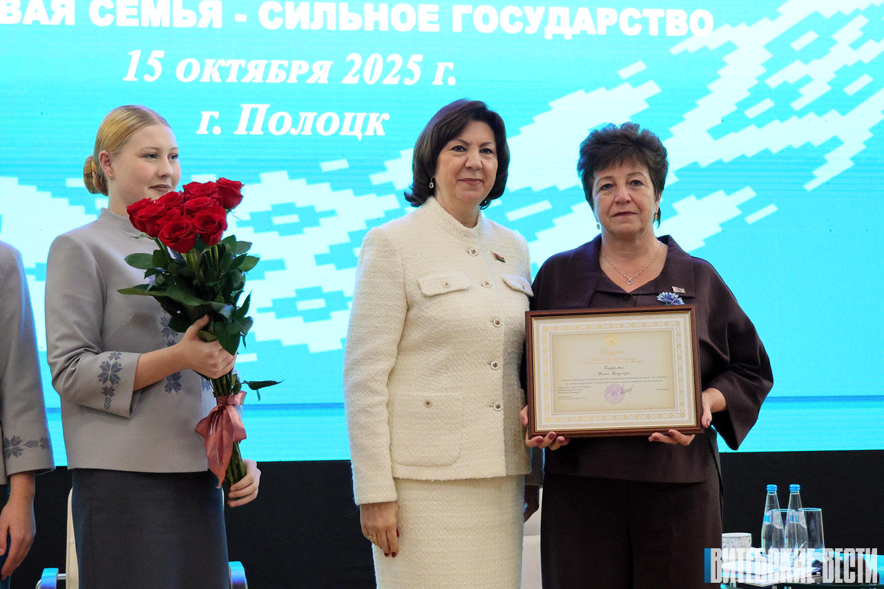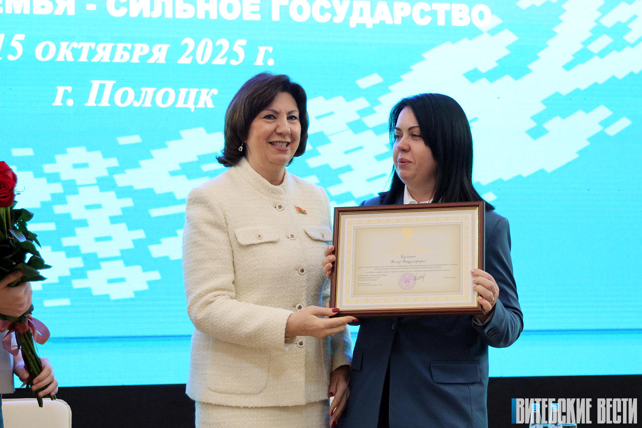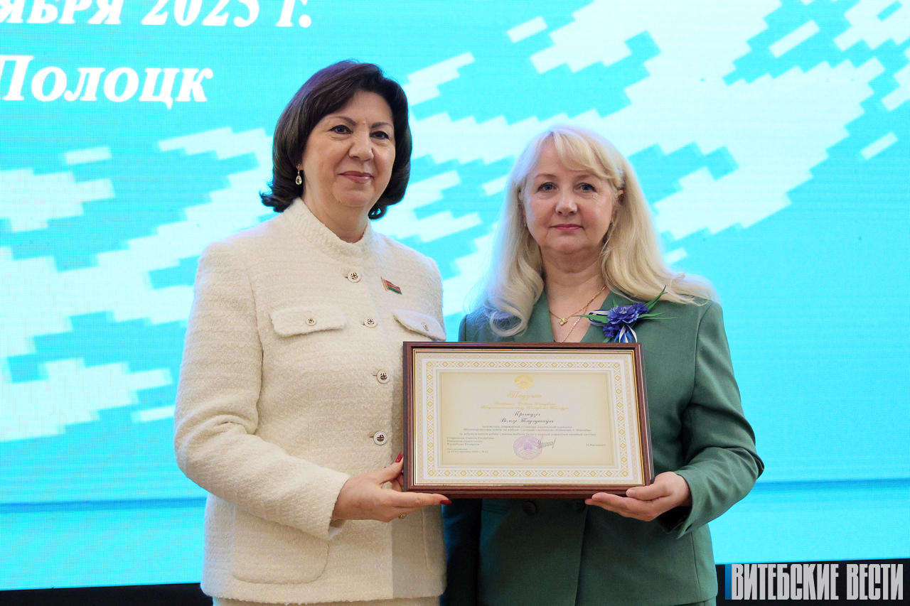 Приятным моментом мероприятия стало вручение благодарностей председателя Совета Республики Н.И.Кочановой. В числе награжденных и представительница северного региона – Ирина Петрова, приемный родитель управления по образованию Полоцкого райисполкома.