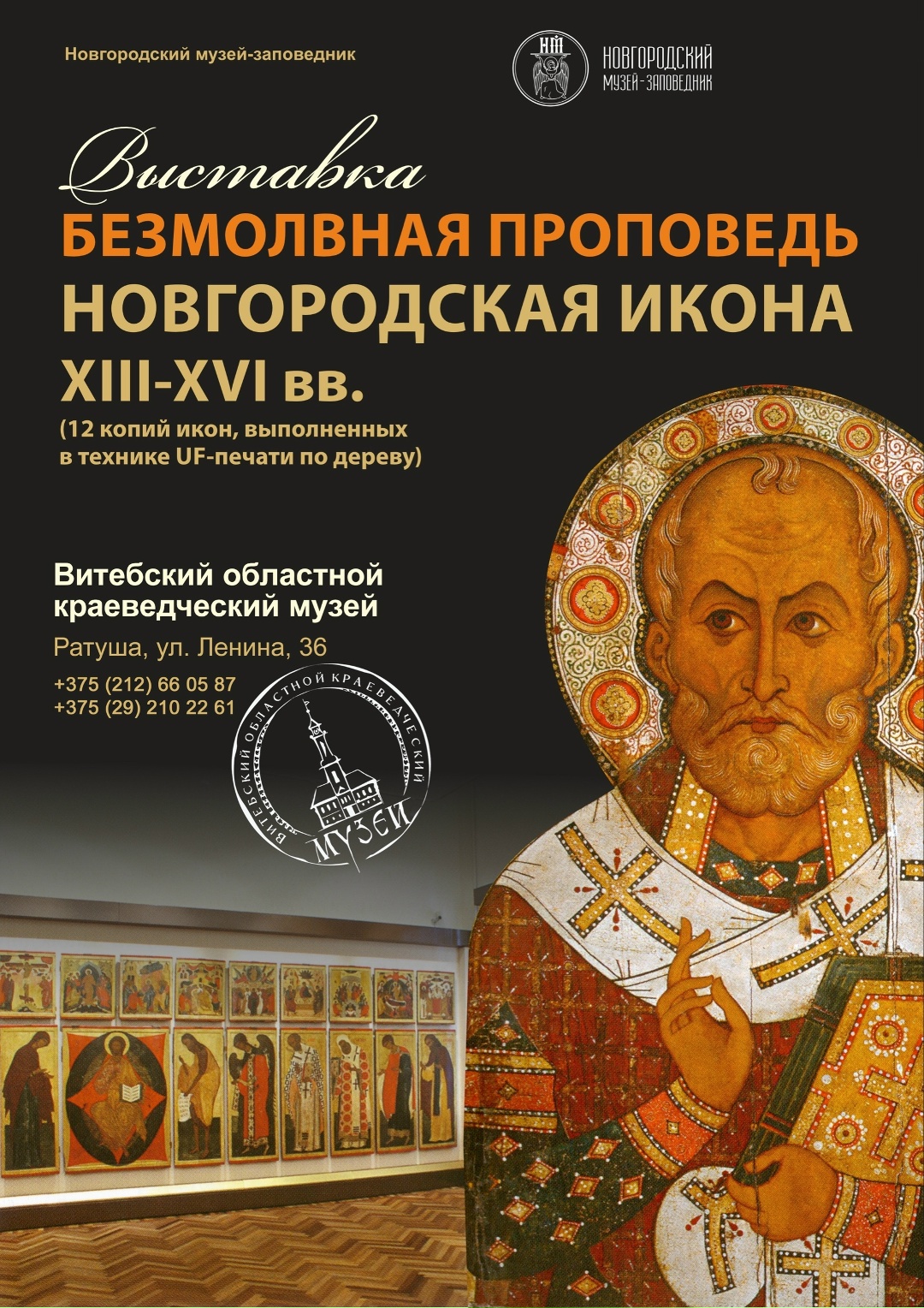 С 23 октября в Витебском областном краеведческом музее начнет свою работу выставка под названием «Безмолвная проповедь. Новгородская икона XIII–XVI веков». Этот инновационный проект, разработанный одним из крупнейших музеев мира – Новгородским музеем-заповедником, предоставит уникальную возможность познакомиться с подлинными шедеврами древнерусской живописи благодаря применению самых современных печатных технологий.