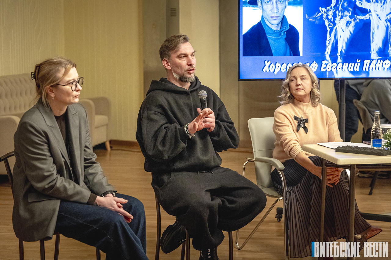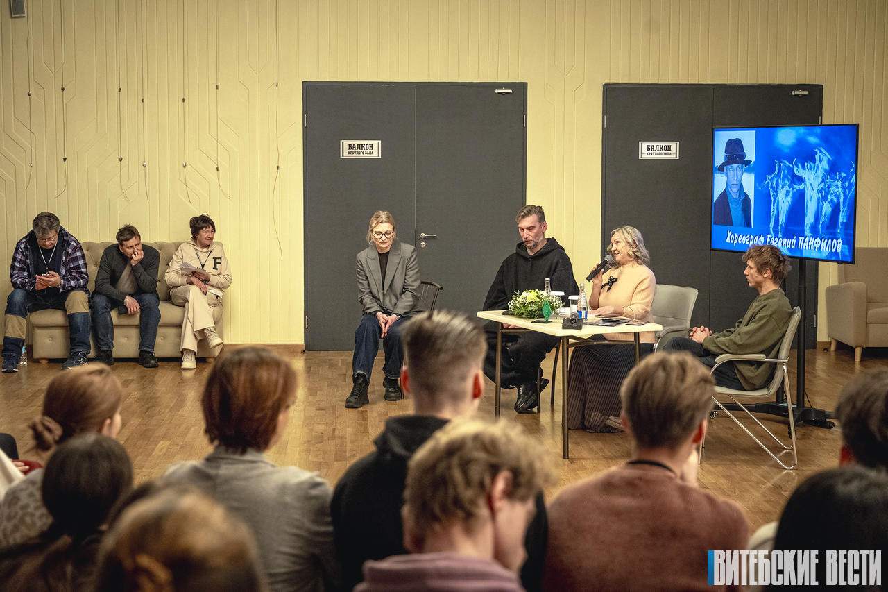 Во второй части встречи своими эмоциями и мыслями поделились лауреаты премии имени Евгения Панфилова, которая была учреждена в память о хореографе, руководитель витебской студии современной хореографии Диана Юрченко, основатель театра «D.O.Z.SK.I» Дмитрий Залесский из Минска и автор проекта «Х-перИменты» Валентин Исаков из Гомеля.
