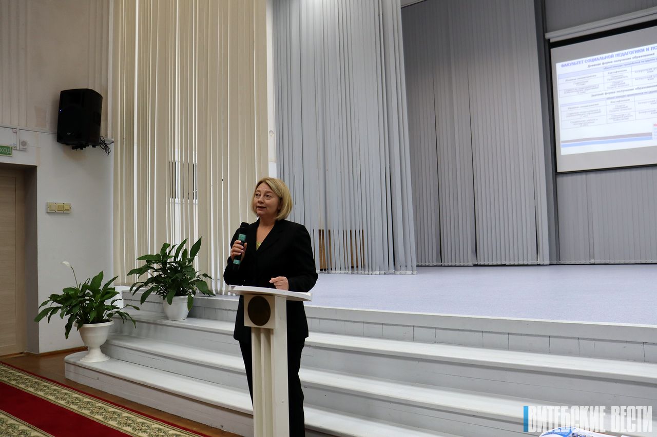 В Первомайском районе Витебска такие ярмарки прошли накануне осенних школьных каникул. В СШ № 45 собрались учащиеся из школ района, которые связывают свое будущее с поступлением в ВГУ им. Машерова. Преподаватели, студенты сделали яркую презентацию университета, подробно рассказали о факультетах социальной педагогики и психологии, математики и информационных технологий, гуманитарных знаний и коммуникации, педагогическом, юридическом, лицее ВГУ.