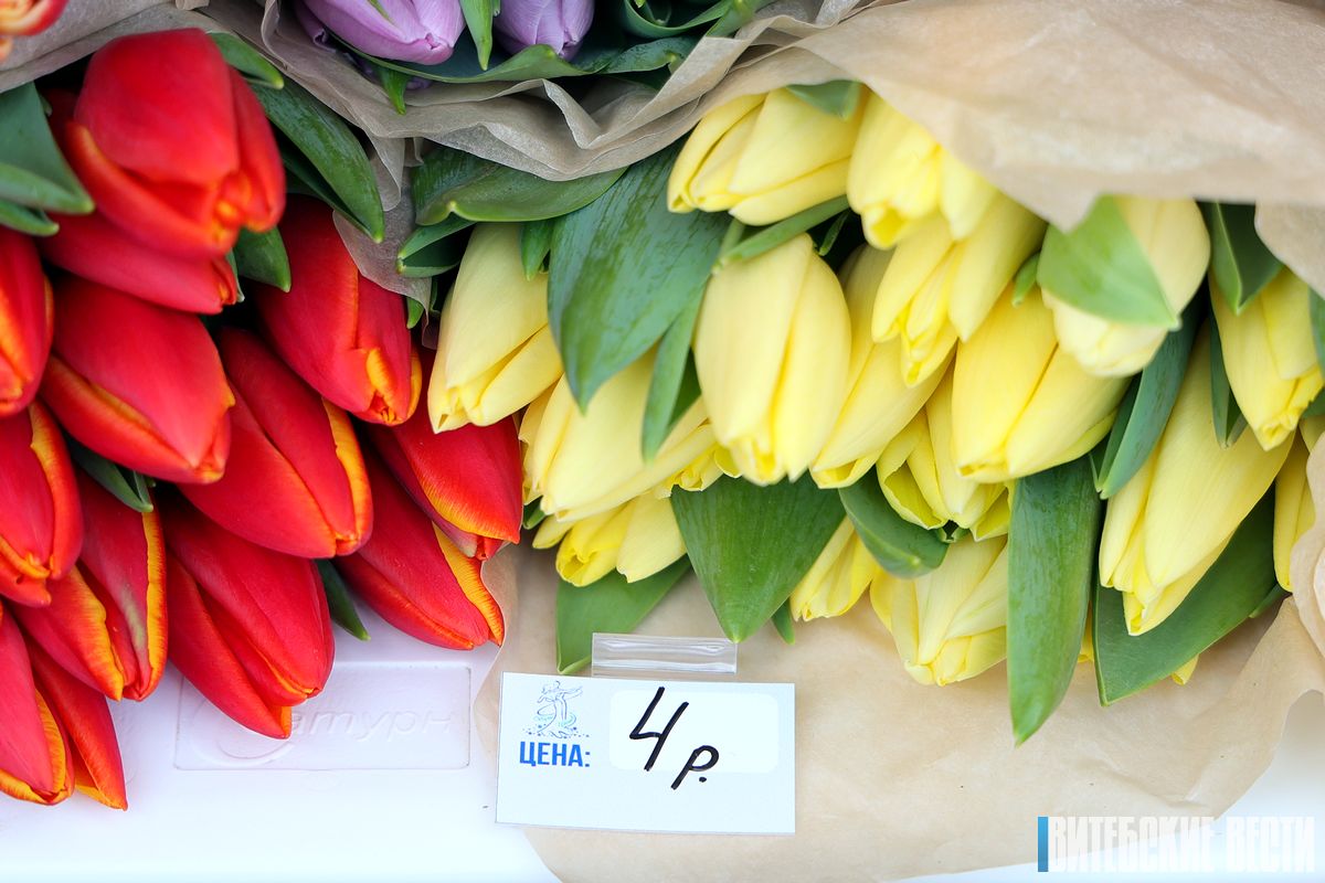 На цветы спекулятивного роста цен нет. Рынок отрегулировал стоимость востребованной праздничной продукции. Так, букет тюльпанов стоит не дороже, чем в прошлом году. Такой вывод сделали сотрудники главного управления МАРТ по Витебской области, главного управления торговли и услуг обл- и горисполкома, а также ОБЭП ОВД администрации Октябрьского района Витебска, которые проанализировали продажу цветов в областном центре.