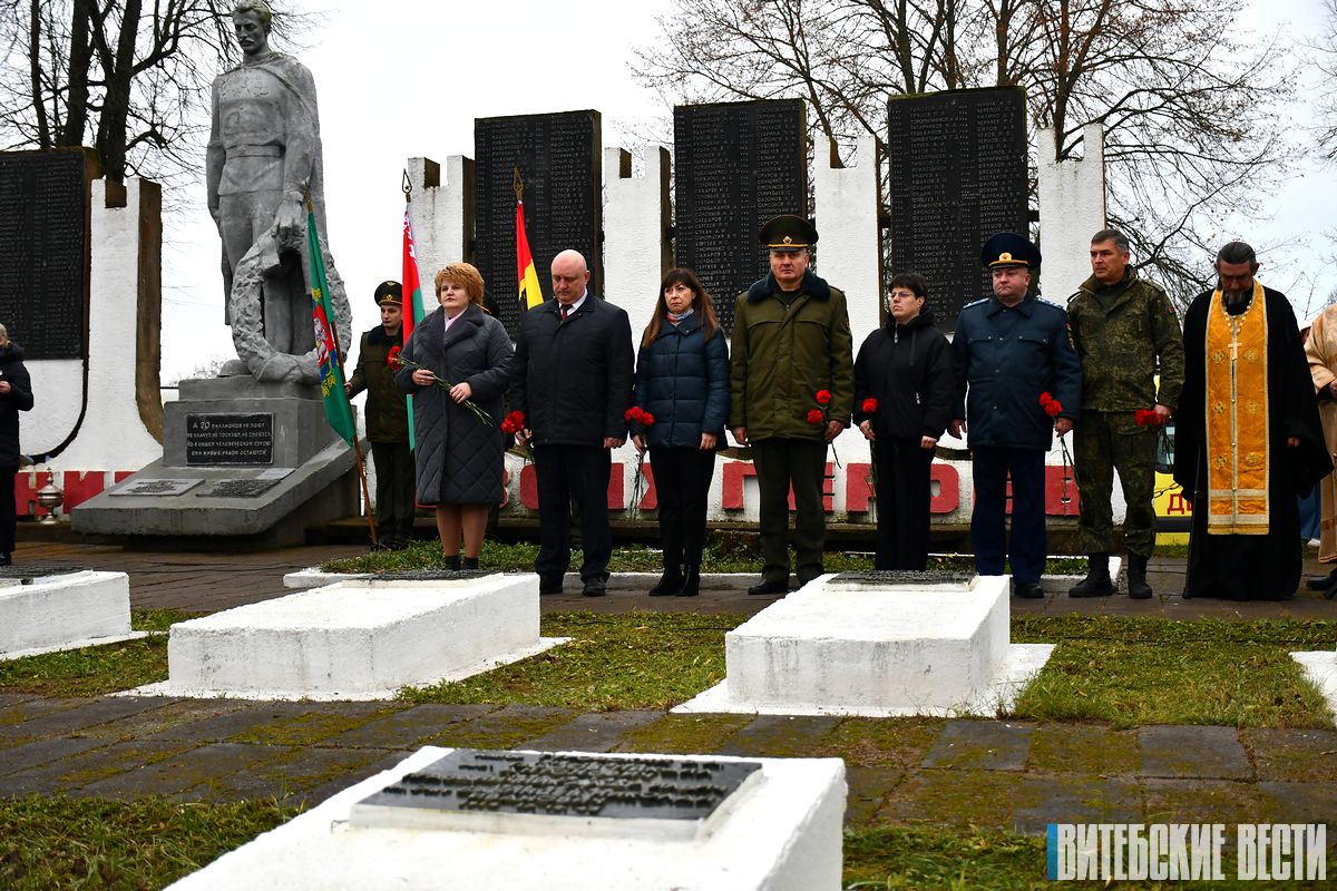 На братской могиле в деревне Меховое в преддверии Дня Октябрьской революции перезахоронили останки советских воинов, погибших во время Великой Отечественной войны при освобождении Городокского района от немецко-фашистских захватчиков.