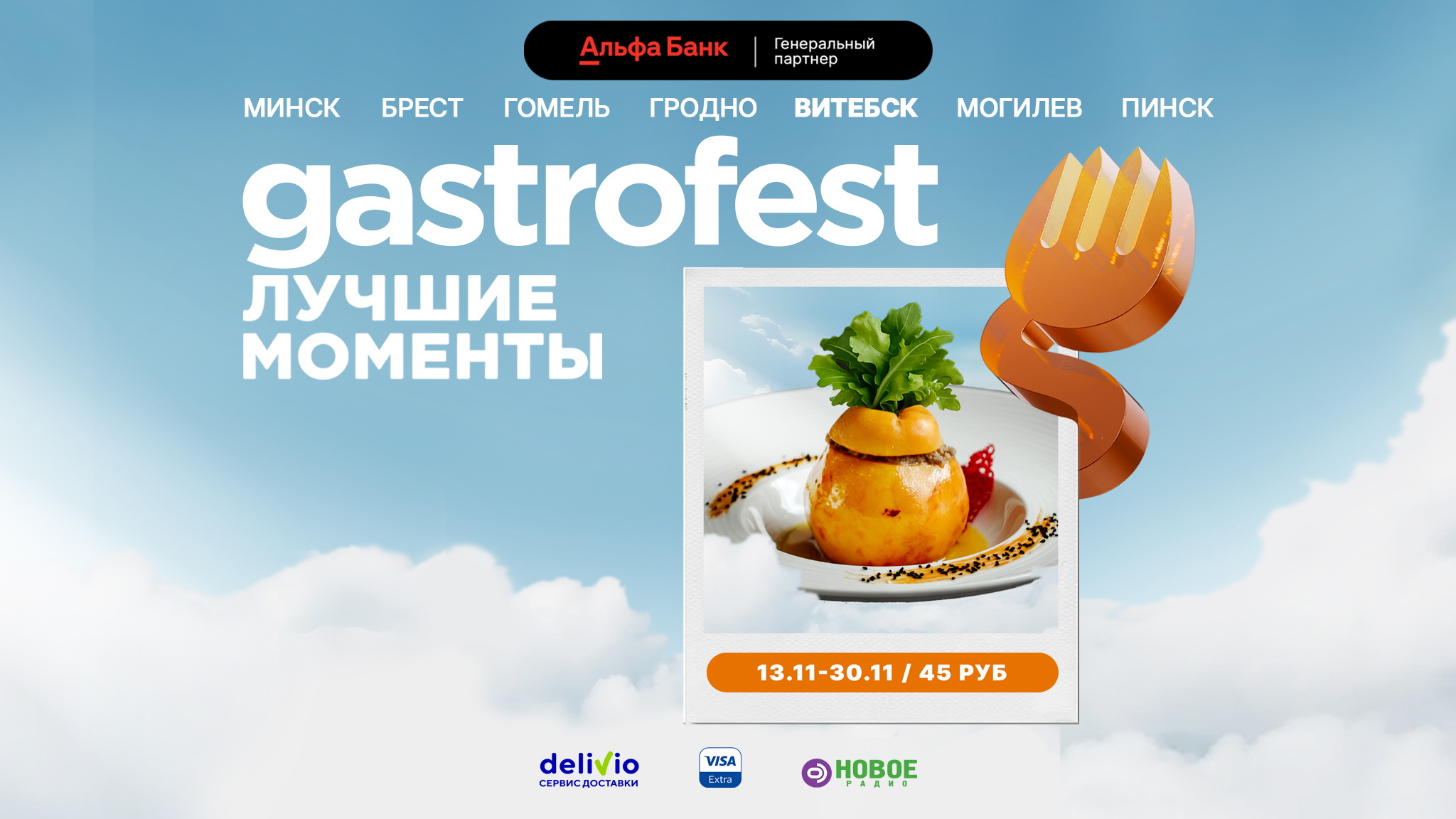 Республиканский фестиваль Gastrofest вновь пройдет в Витебске! С 13 по 30 ноября заведения представят своим гостям оригинальные выгодные сеты. Стоимость фестивального предложения составит 45 рублей.