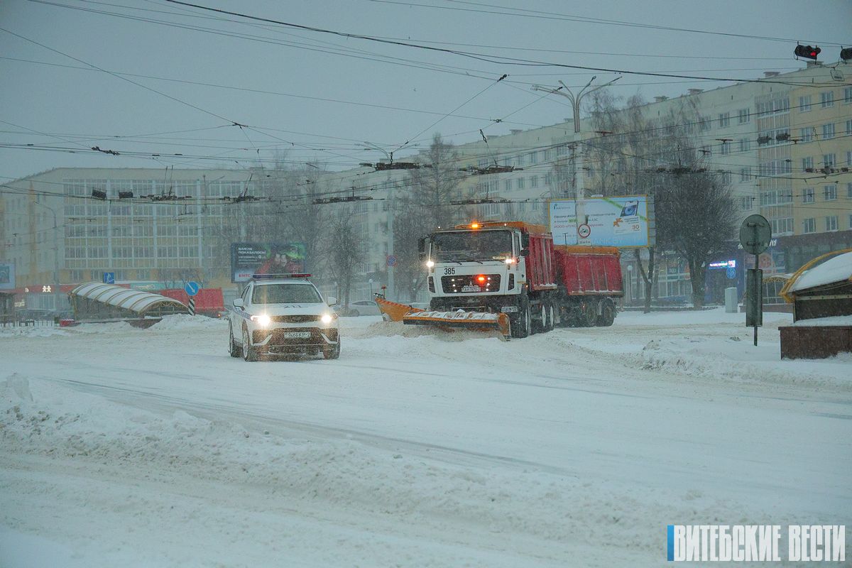 Всю ночь на улицах Витебска работали три колонны снегоочистительной техники. Об этом корреспонденту «ВВ» сообщил заместитель председателя Витебского горисполкома Павел Шикшнян.