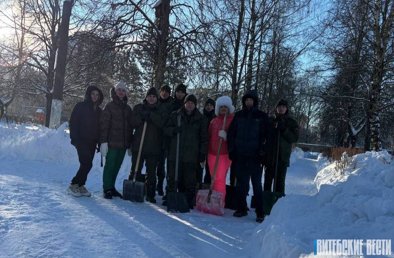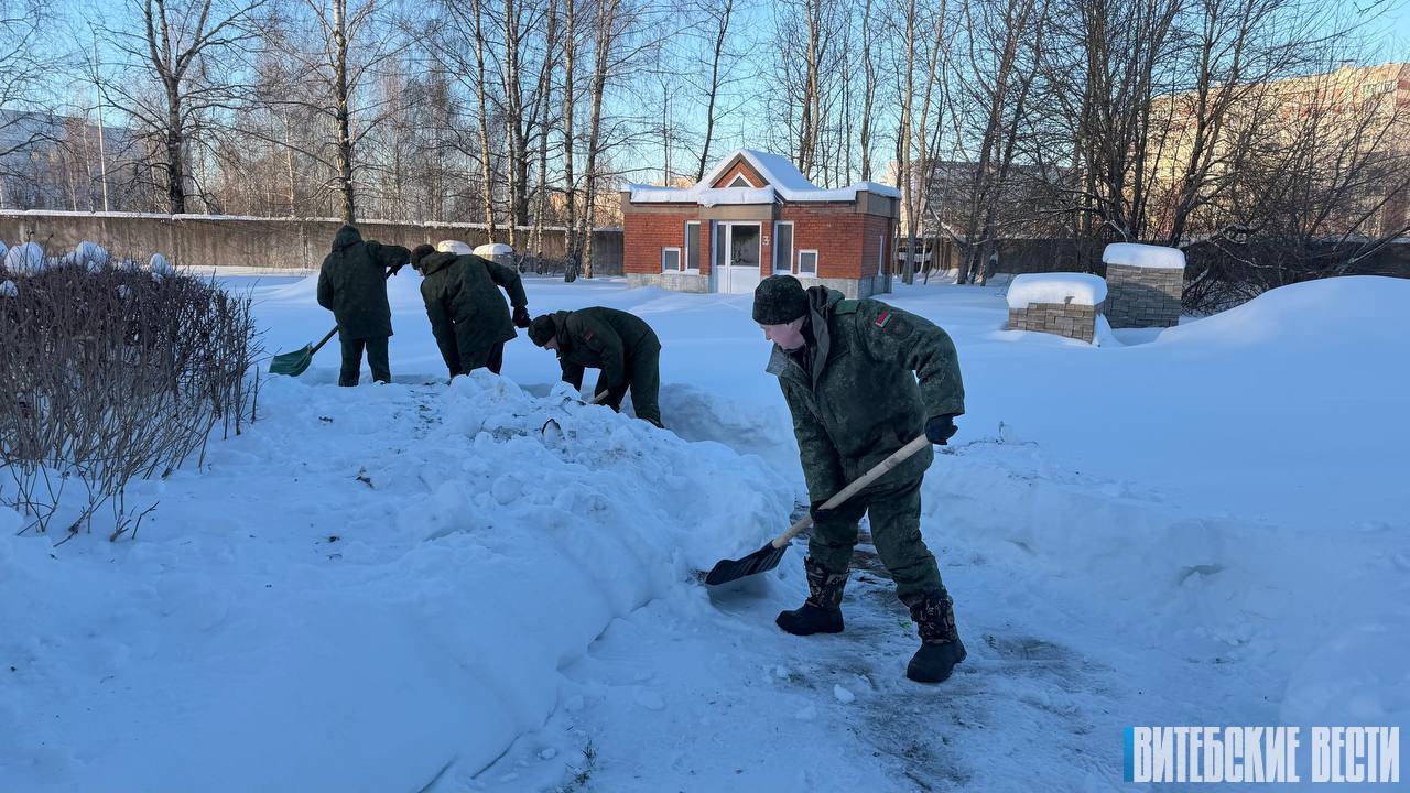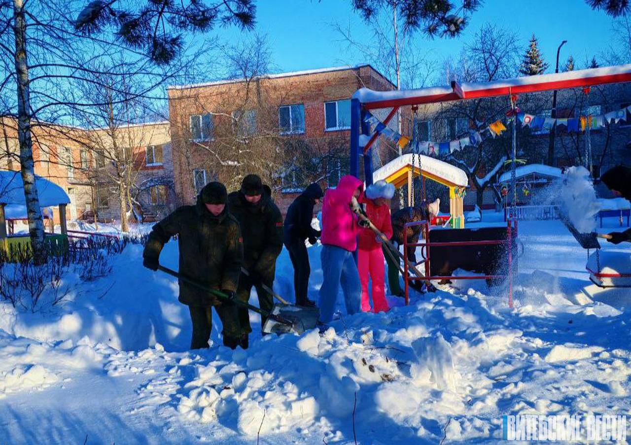 Местом приложения общих усилий стал Витебский дом ребёнка. Активисты и военнослужащие направили свои силы на расчистку территории учреждения от снежных заносов.