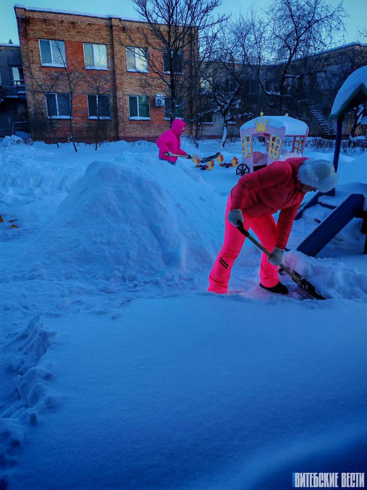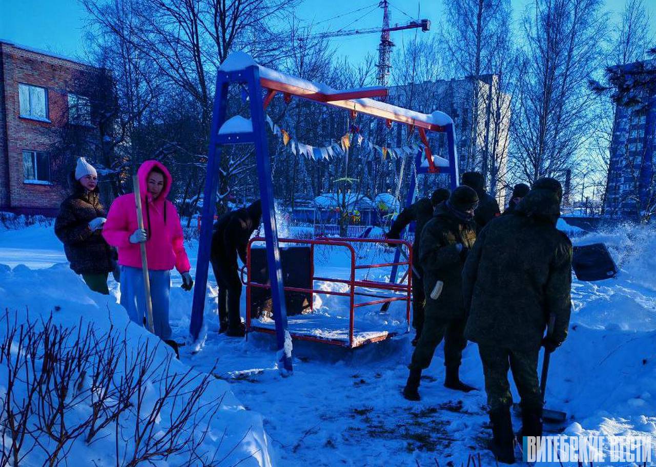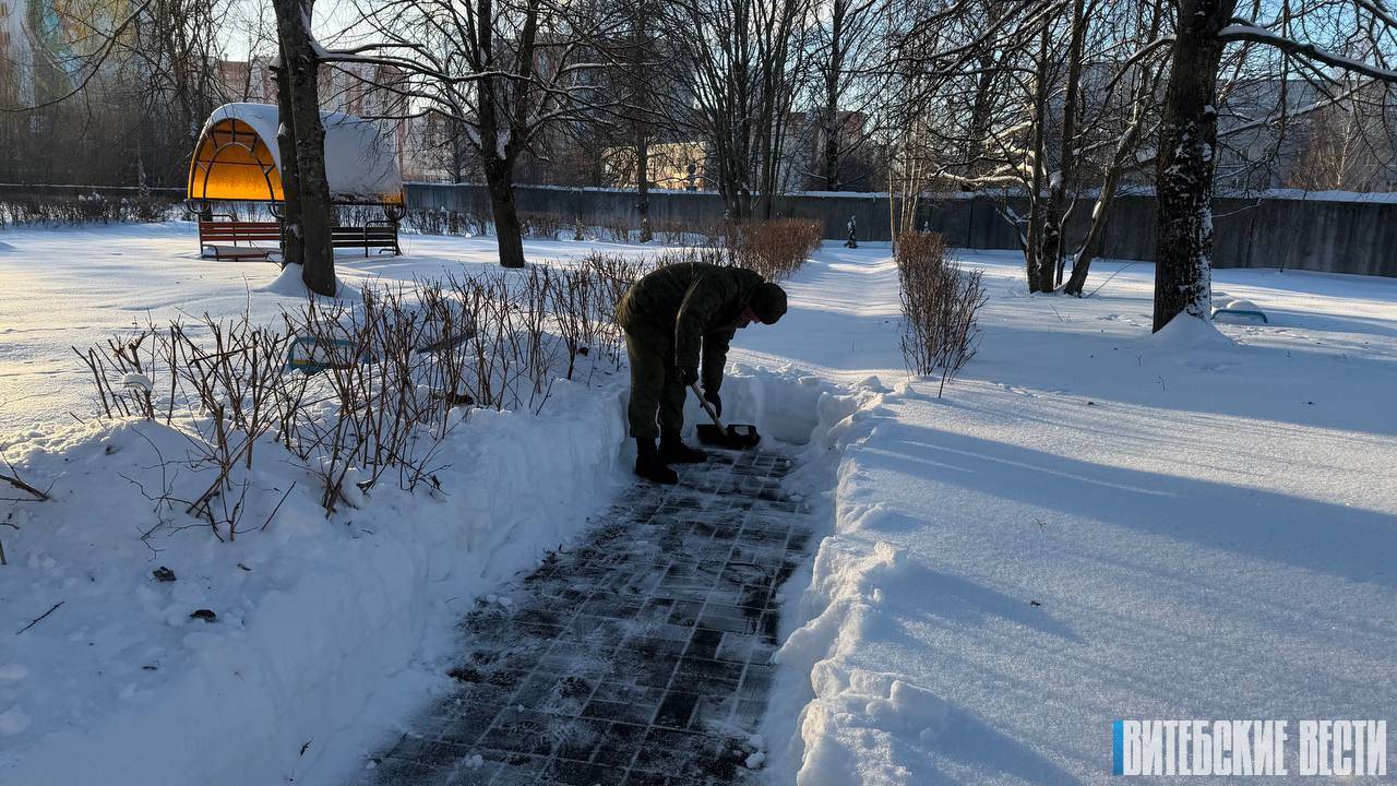 Местом приложения общих усилий стал Витебский дом ребёнка. Активисты и военнослужащие направили свои силы на расчистку территории учреждения от снежных заносов.