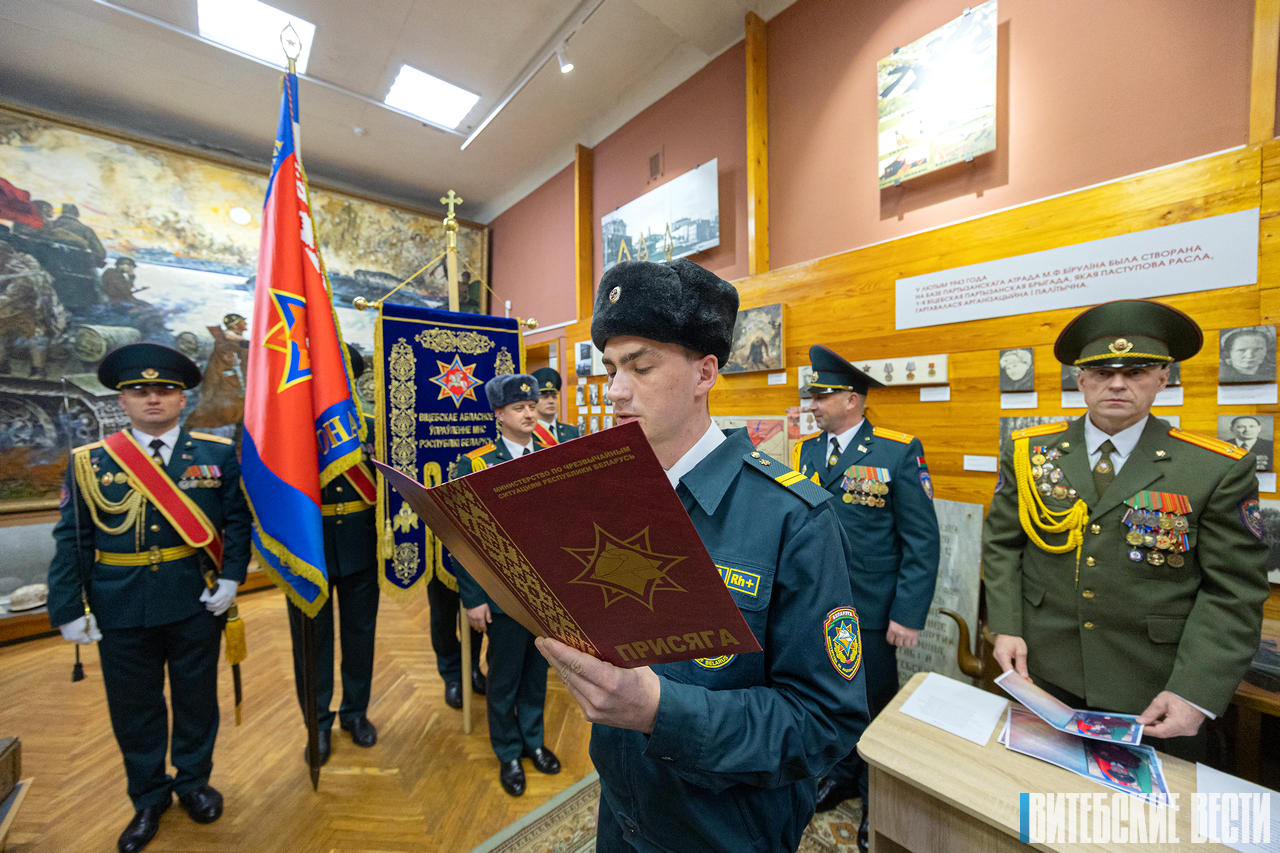 Молодые служащие в органах и подразделениях по чрезвычайным ситуациям Витебщины приняли присягу. Этот важный и волнительный момент новобранцы запомнят на всю жизнь: клятву верности Родине и народу они произнесли в особенный для профессиональной службы день – День спасателя.