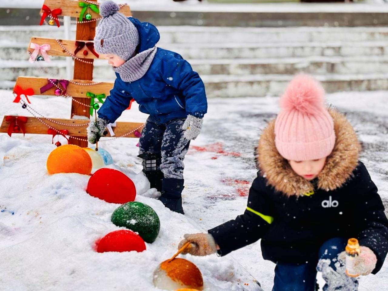 Жюри впечатлило не только многообразие огней, но и ледяное творчество. Каждая снежная скульптура, созданная во дворе семьи Папкович, – настоящее произведение искусства. Идея родилась спонтанно: дочь Екатерина приехала помочь родителям расчистить дорожки после метели. Увидев, сколько бесплатного материала для творчества, взялась за создание фигур. Из-за сильных морозов снег не лепился, поэтому приходилось тщательно его утрамбовывать и приглаживать руками. Процесс не прекращался до позднего вечера. Не один раз отогревалась чаем, но результат того стоил. Рядом со сказочными фигурами появилась даже лошадь – символ года.