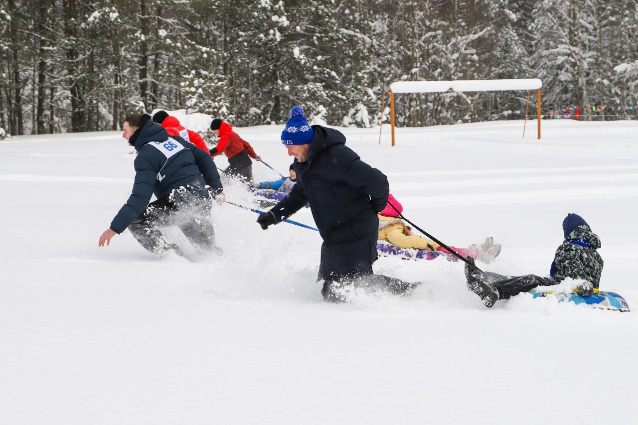 Традиционно участников ждали лыжные гонки: массовый старт и эстафета. Какой же праздник без весёлых развлечений и захватывающих состязаний!