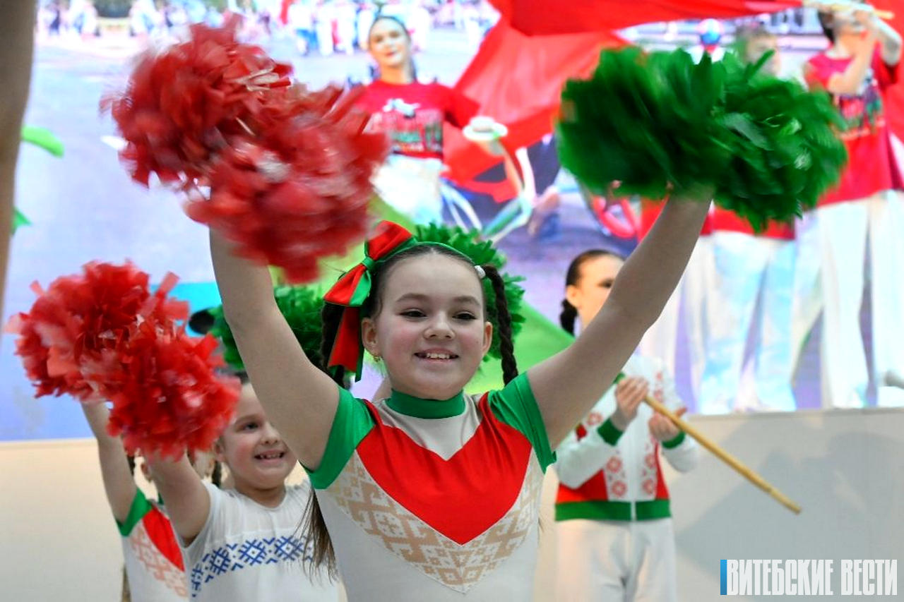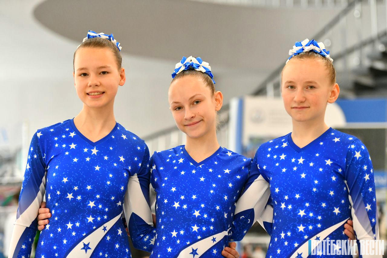 Юные таланты образцового хореографического коллектива «Акцент» Витебского городского центра дополнительного образования детей и молодежи Анастасия Грубинова, Ольга Ищенко и Надежда Шинкоренко представляли номер на патриотическую тематику под названием «Родина моя», в который включили большое количество акробатических трюков и интересных комбинаций.