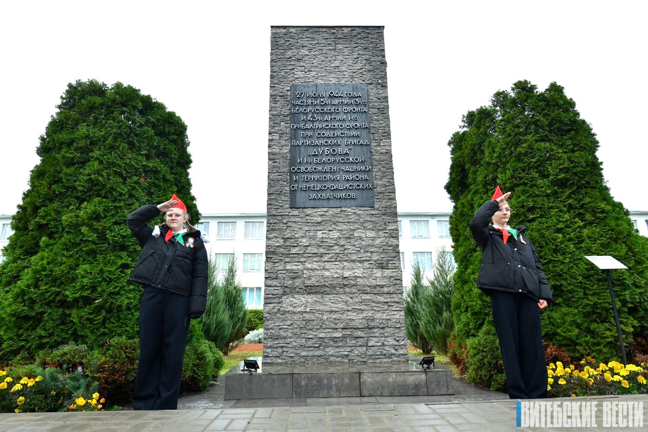 В Чашниках почетные гости возложили цветы у братской могилы, в которой захоронены красноармейцы, погибшие в годы Гражданской войны, партизаны и воины-освободители, отдавшие свои жизни во время Великой Отечественной войны.