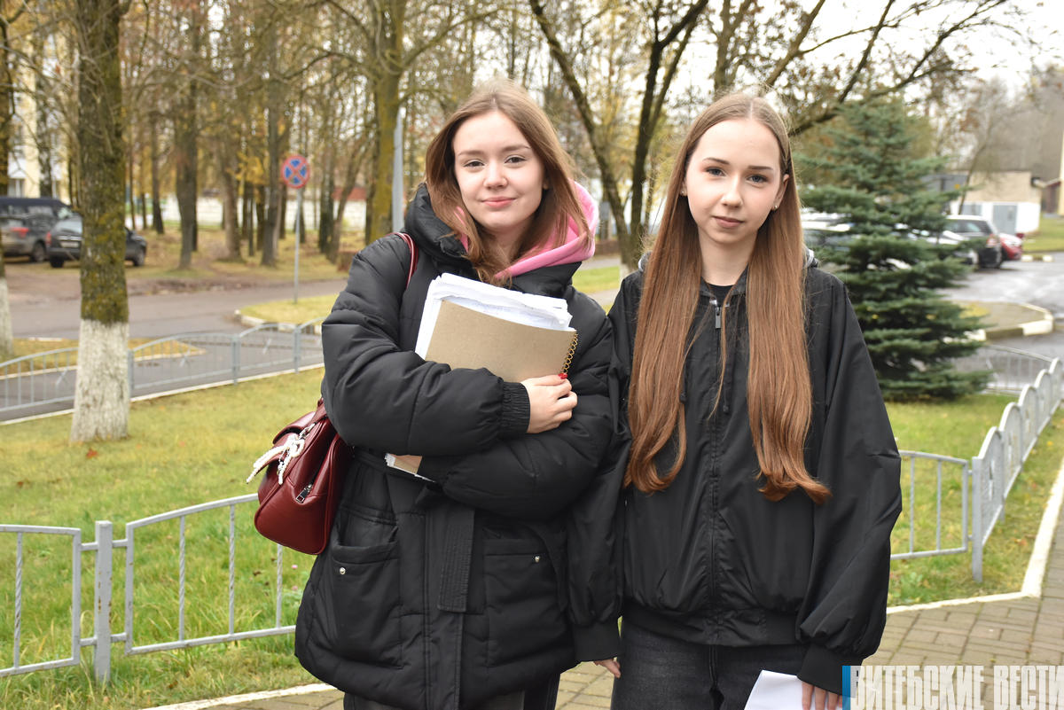 Будущие абитуриенты начали собраться около вуза еще задолго до начала испытаний. На часах 9.50, а небольшие компании ребят уже азартно обсуждают свои шансы на успех. Кто-то осторожно перелистывает конспекты, вспоминая грамматические нюансы белорусского и русского языков. В то же время другие ребята активно обсуждают друг с другом детали подготовки. Некоторые просто стоят, с волнением ожидая начала испытаний.
