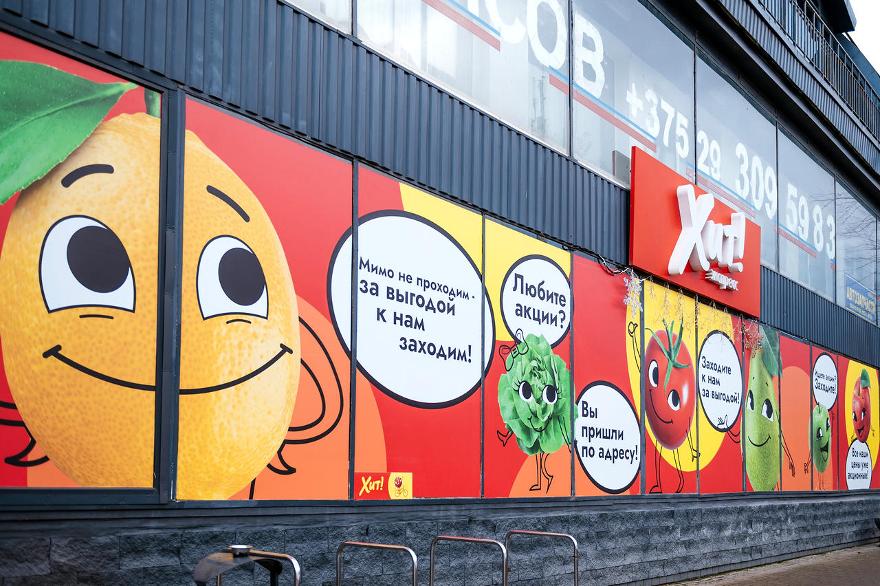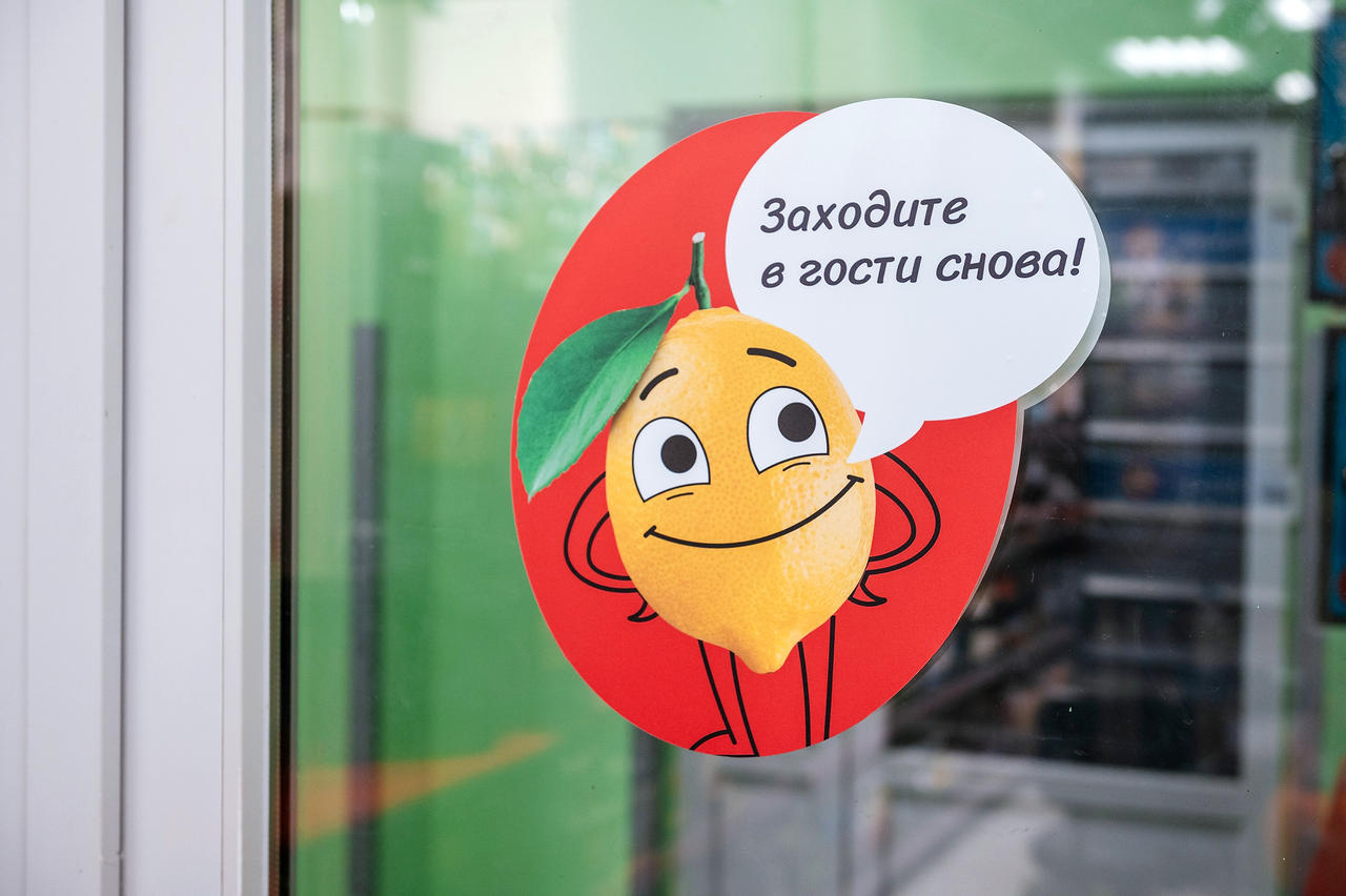 Но самая интересная новинка — это целая вселенная фирменных персонажей из овощей и фруктов, которые знакомы каждому. Каждый персонаж имеет свой характер и обращается к определенной аудитории. Они не просто украшают стены, а ведут диалог с покупателями через яркие фруктовые стикеры с остроумными надписями: «Улётная выгода!», «Добро пожаловать!», «Очень приятные цены».
