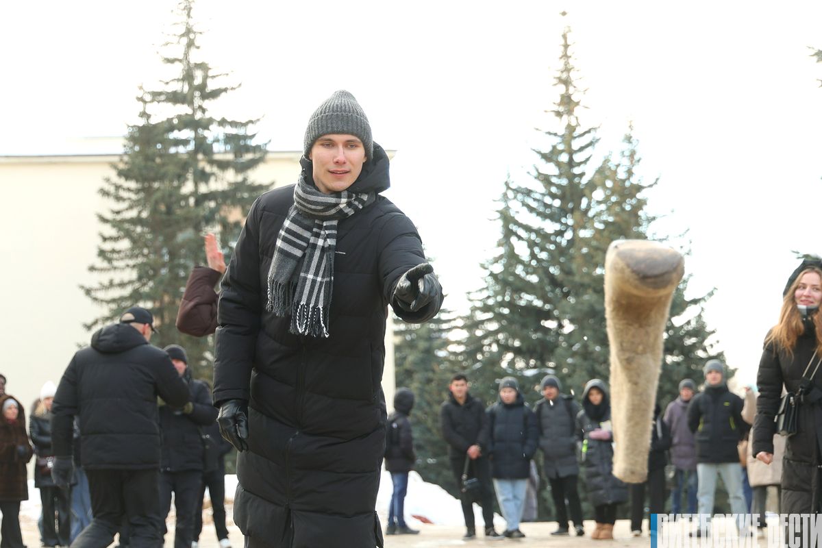 Студенты разных факультетов мерились силой, соревновались в перетягивании каната и метании валенка.