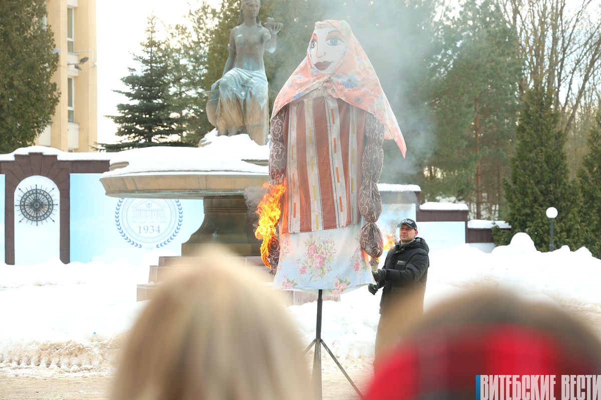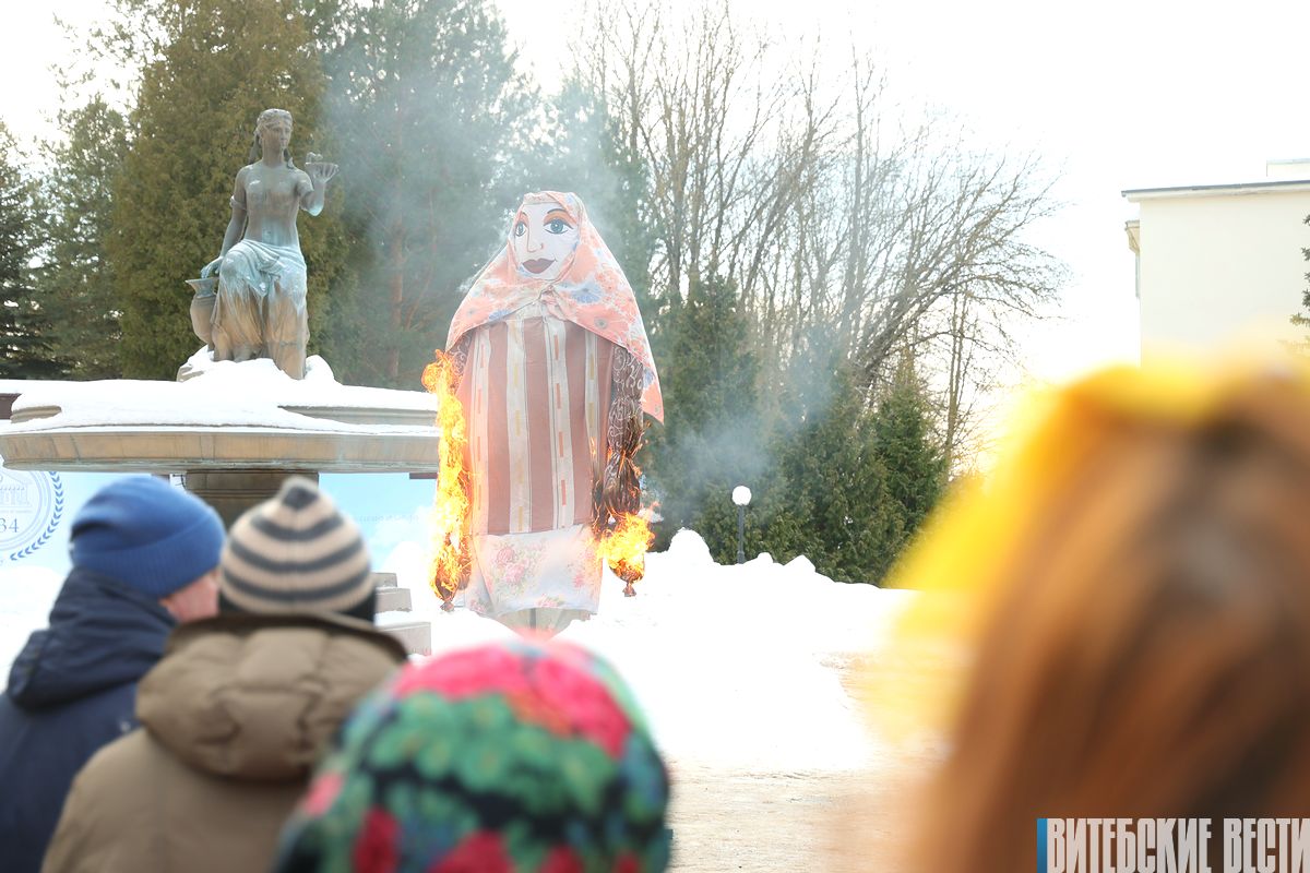На территории университета прошло сожжение чучела Масленицы.