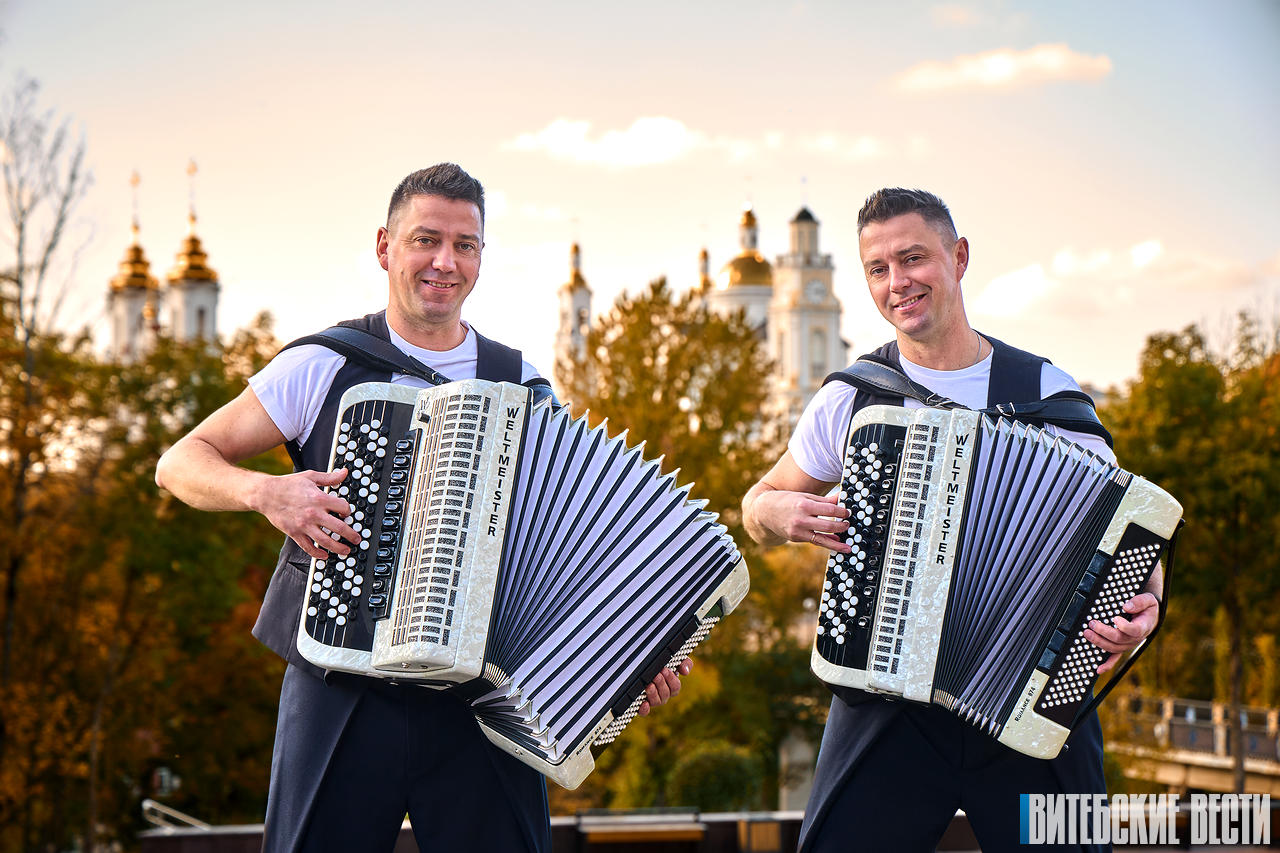 От дедовского «Яблочка» до трендов «ТикТока». Близнецы-баянисты из Витебска желанные гости на праздничных мероприятиях не только в Беларуси, но и в России, Латвии и Германии.