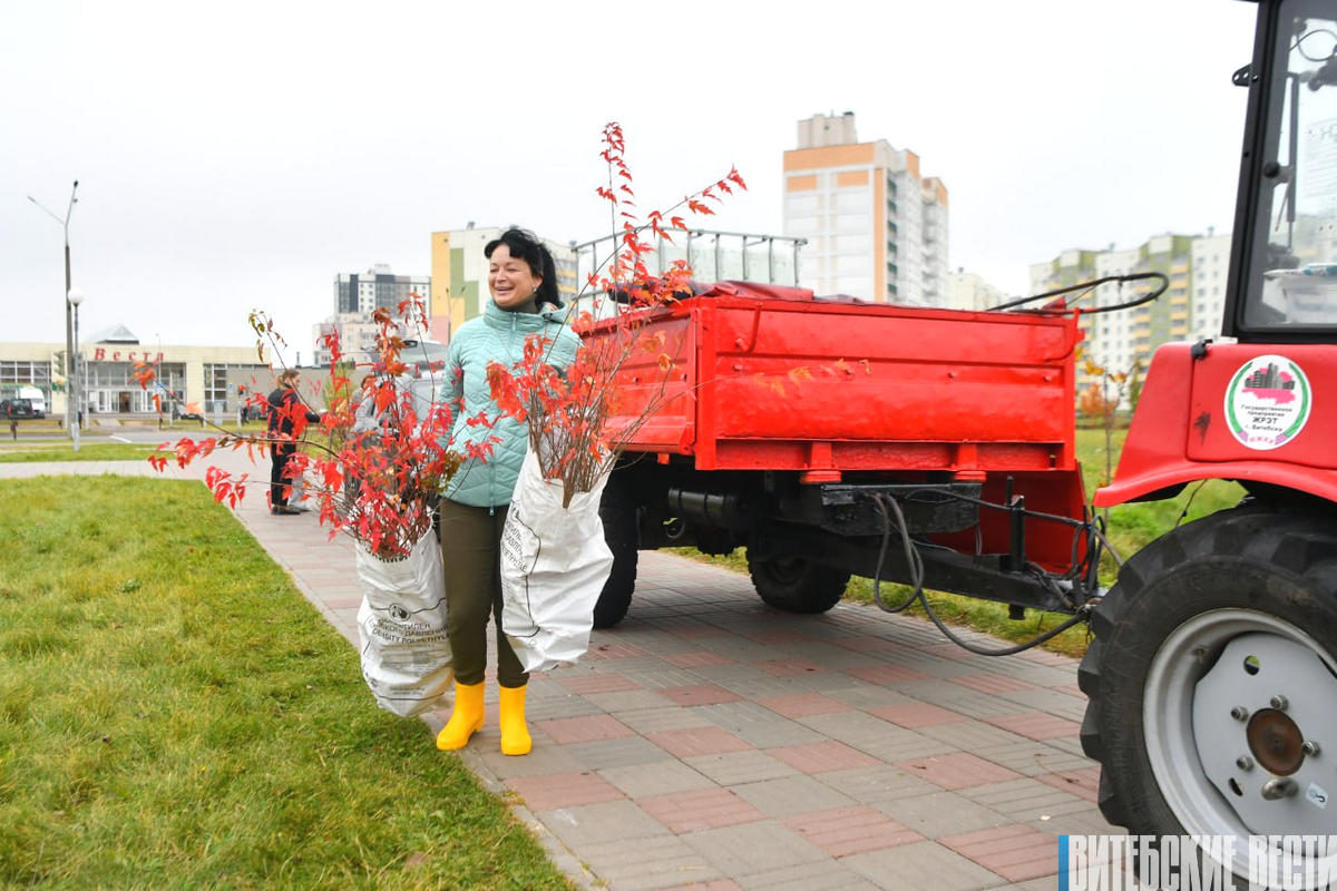 «Дай лесу новае жыцце». Профсоюзы Витебcкой области присоединились к республиканской акции и высадили 35 кленов сорта Гиннала около средней школы №47 имени Е. Ивановского.