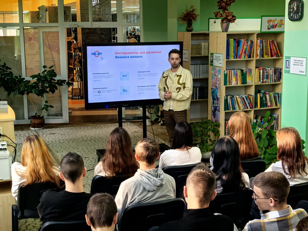 Он, как представитель компании-резидента Парка высоких технологий, рассказал о практическом применении инноваций в бизнесе. Спикер представил первый в Беларуси генератор доменных имён на основе искусственного интеллекта — решение, которое упрощает запуск онлайн-проектов.