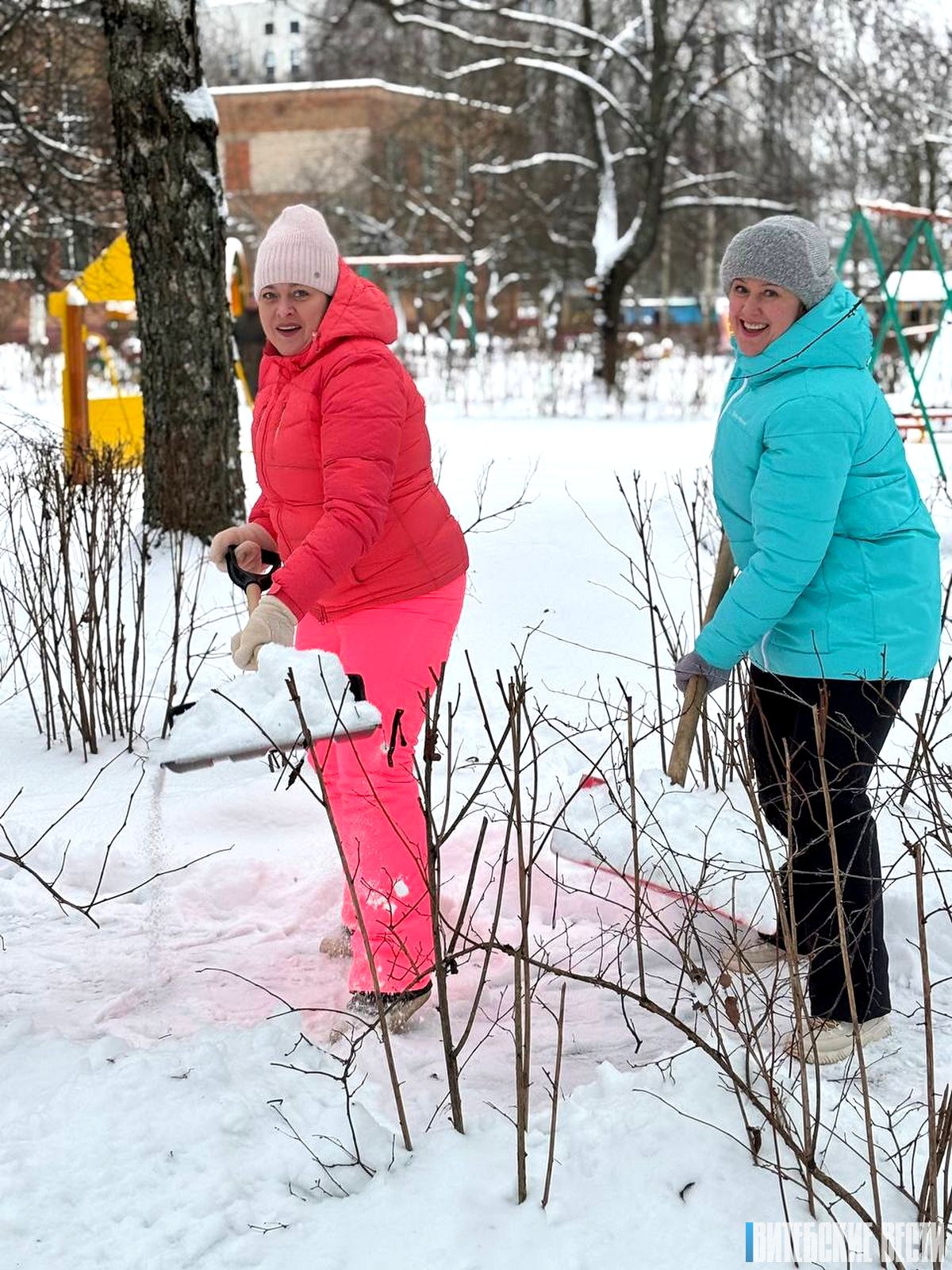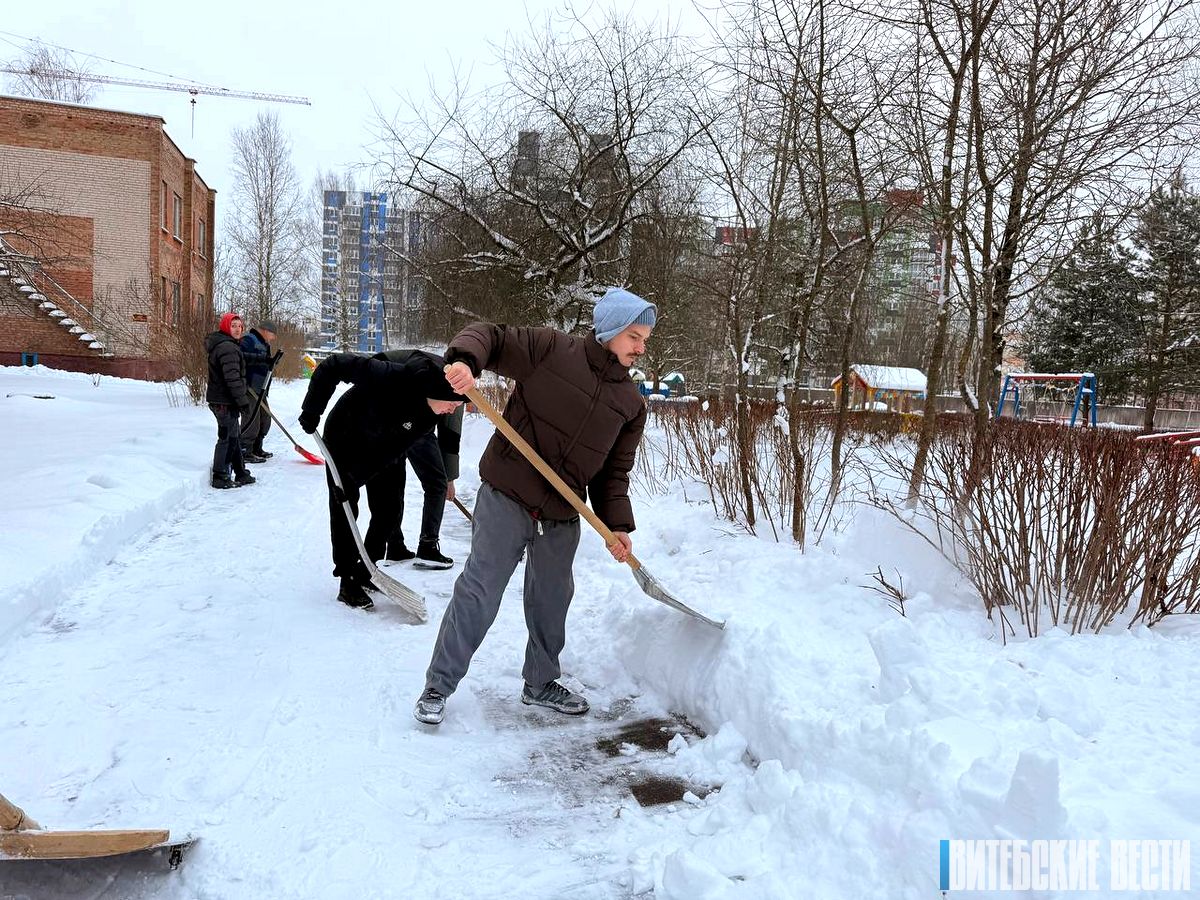 Несмотря на морозный воздух, на территории Дома ребенка кипела работа, превращая заснеженные дорожки и площадки в безопасные и уютные пространства.