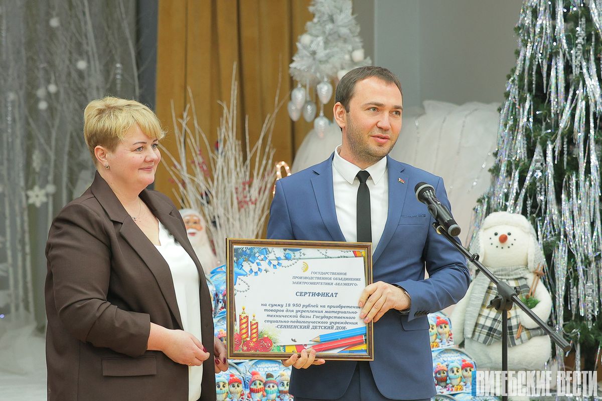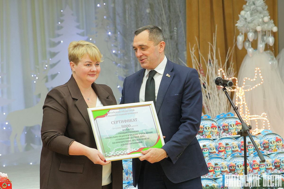 В рамках благотворительной акции "Наши дети" на новогодний утренник в Сенненском детском доме с подарками приехал председатель облисполкома Александр Субботин.