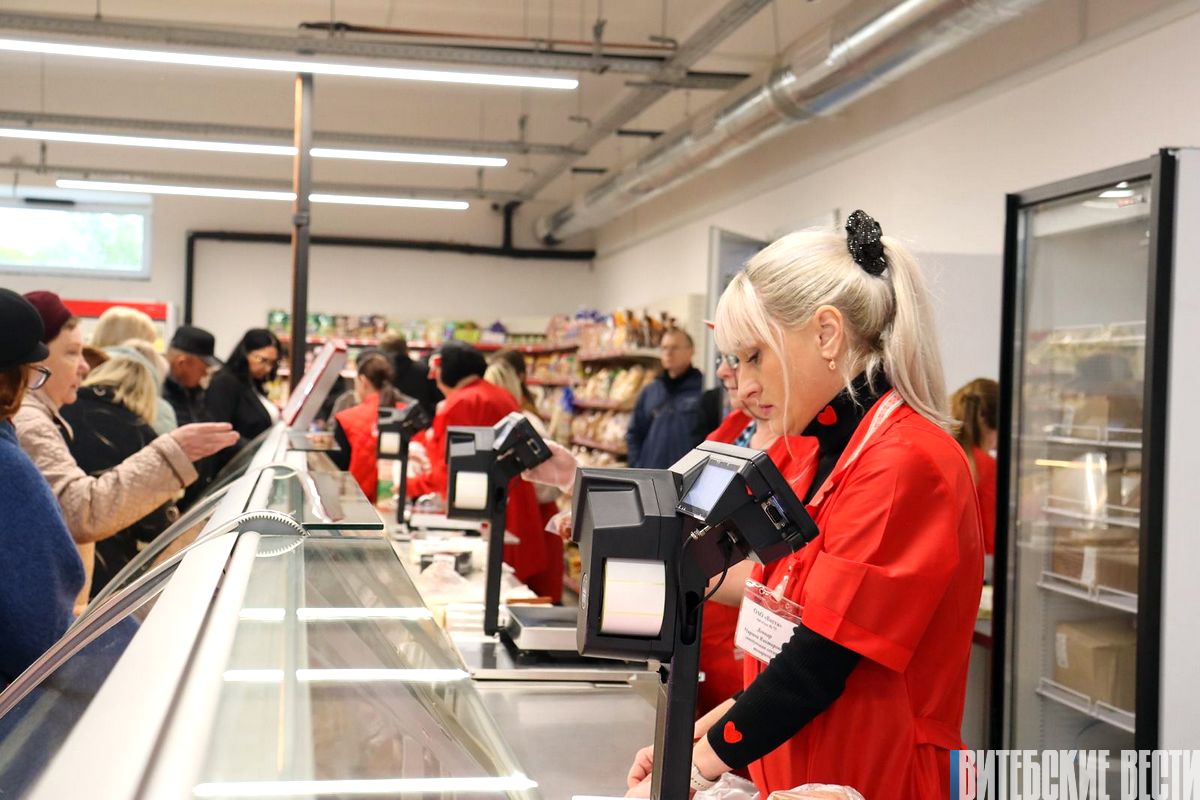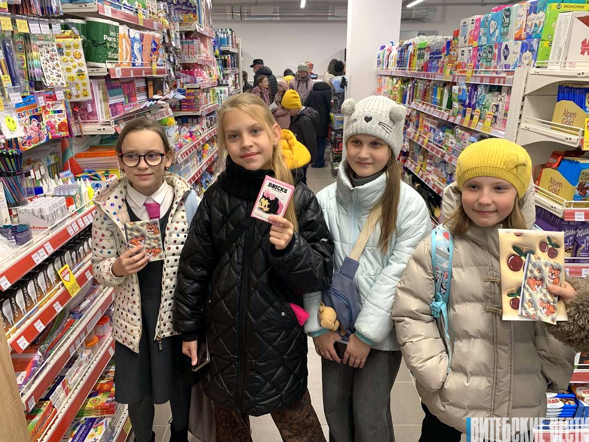 Сразу после перерезания красной ленточки магазин наполнился покупателями. Богатый ассортимент привлекал к прилавкам и взрослых, и юное поколении витебчан. Без покупок не уходил никто.