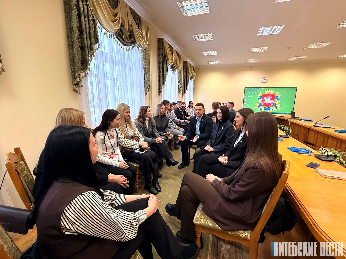 Здесь ребята работали на площадке по командообразованию, которую проводил первый секретарь Витебского городского комитета ОО БРСМ Александр Бышнев. В настоящее время проходит встреча с руководством главного управления торговли и услуг Витебского облисполкома и с представителями отраслевых профсоюзов.