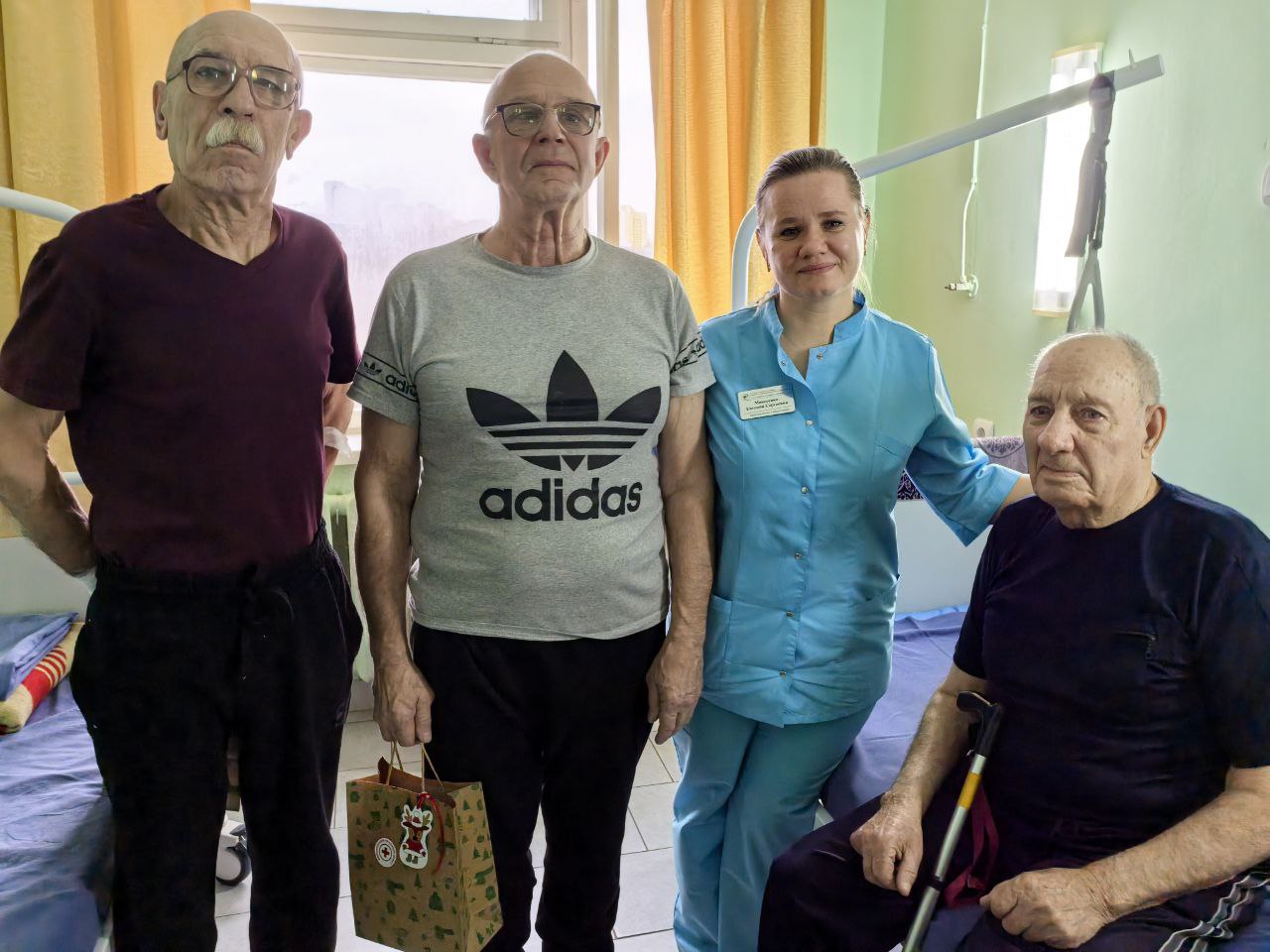 Очередной этап акции состоялся в областном клиническом кардиологическом центре, где пациентов поздравили с наступающими праздниками и вручили им уходовые средства.