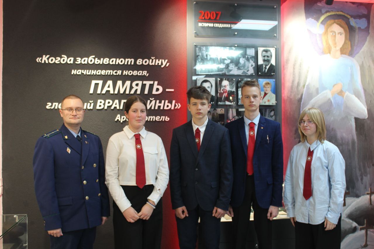 В завершение старшеклассники познакомили представителя прокуратуры с работой в учреждении образования по сохранению исторической памяти. Не так давно в этой гимназии был открыт музей «Бывших малолетних узников нацистских концлагерей».
