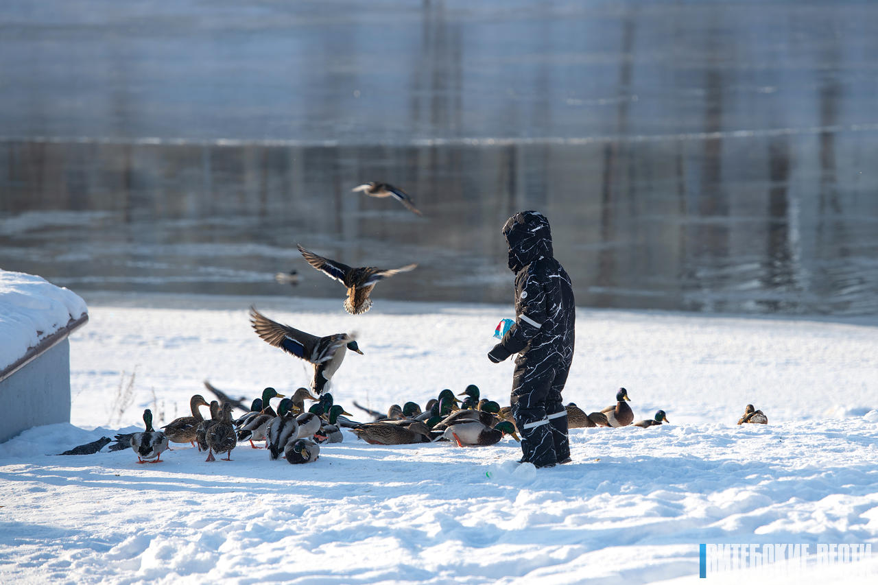На берегу стало тихо и ничто больше не нарушало привычного спокойствия. Лишь утки, подлетавшие к кормившим их детям, изредка покрякивали то ли от удовольствия, то ли от сильного и столь непривычного им январского мороза.