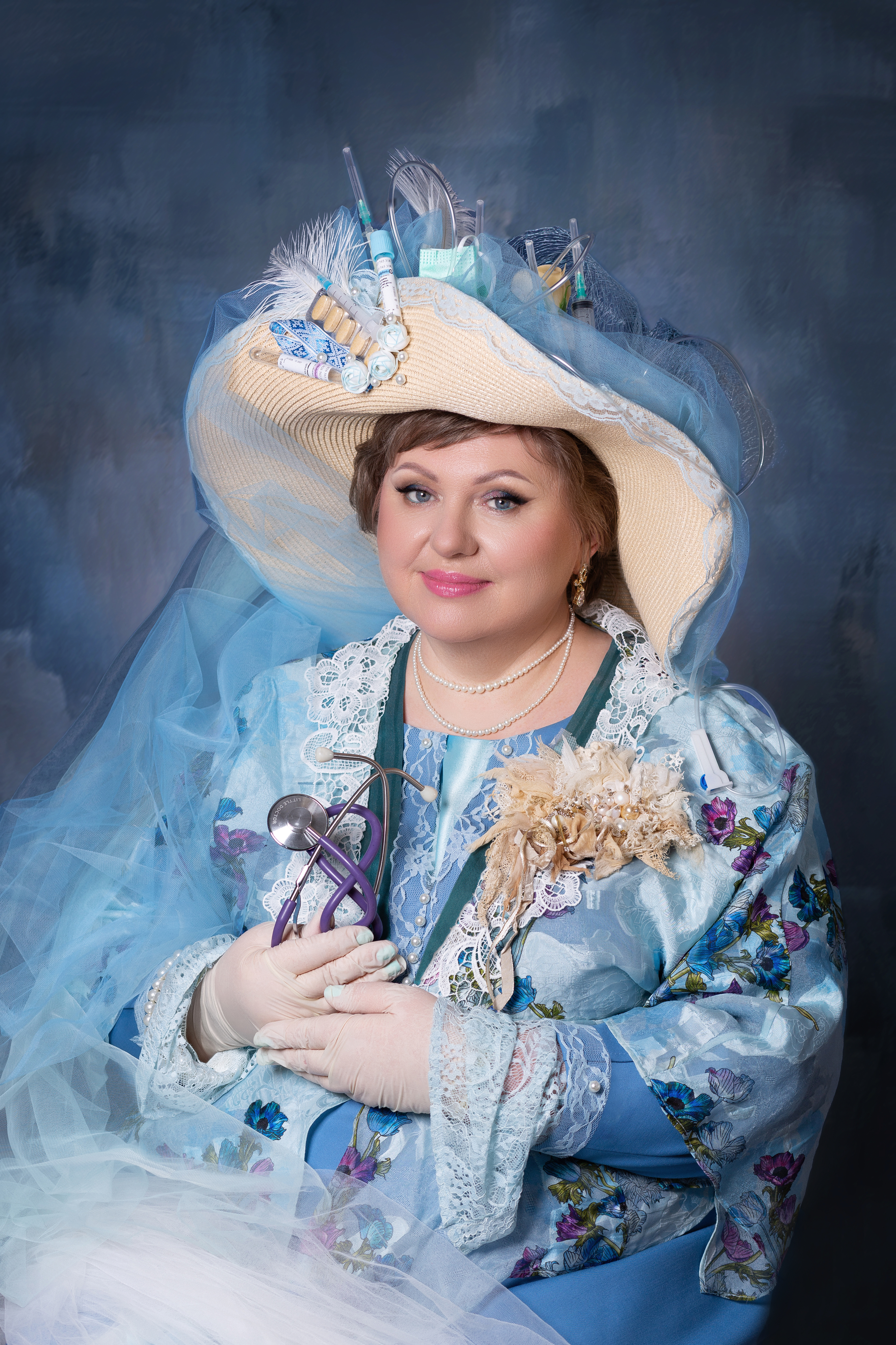 – Вы 25 лет возглавляете областной онкодиспансер. В вашем образе стилист подчеркнула профессиональную основу деятельности. Шляпа украшена медпрепаратами, цветовая гамма – бело-голубая… Какие качества вы выделяете в характере женщины-врача?