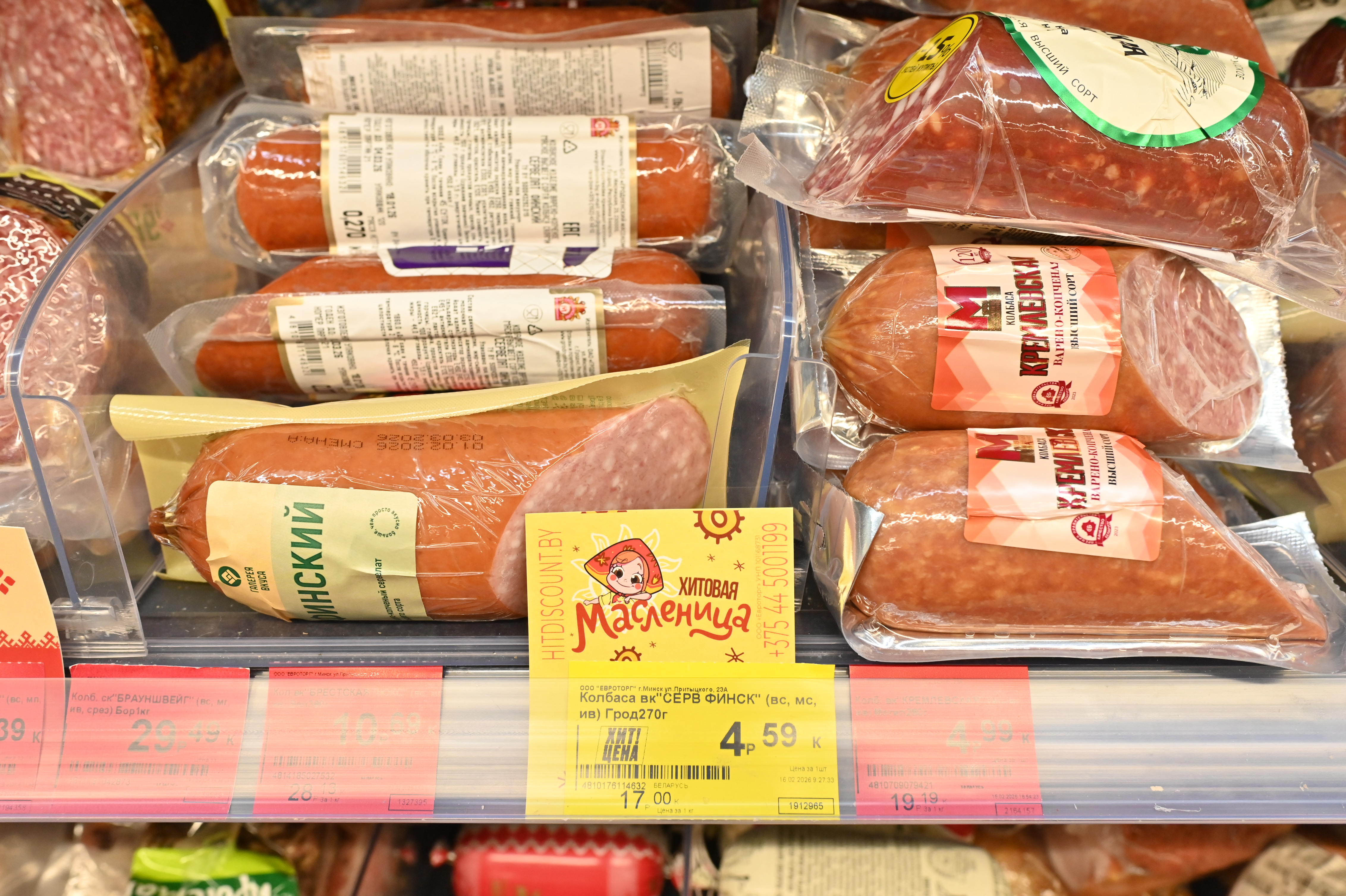 Колбаса «Сервелат финский», высший сорт, Гродненский мясокомбинат - 4,59 рубля за 270 грамм.