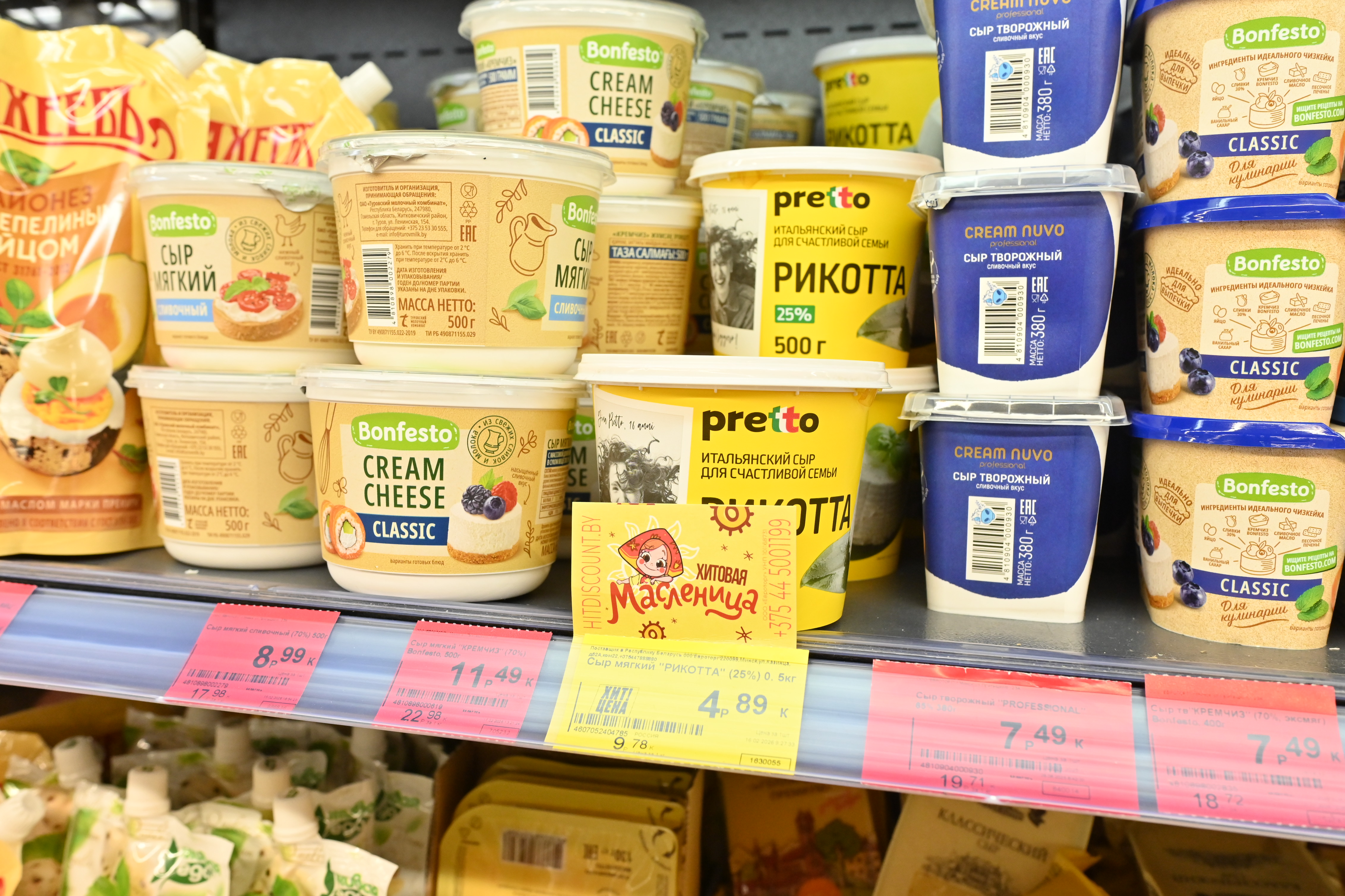 Сыр мягкий Pretto, рикотта, 25%, РФ - 4,89 рубля за 500 грамм.