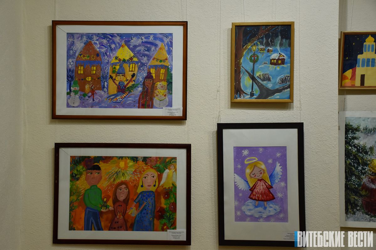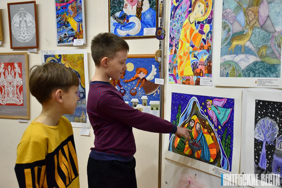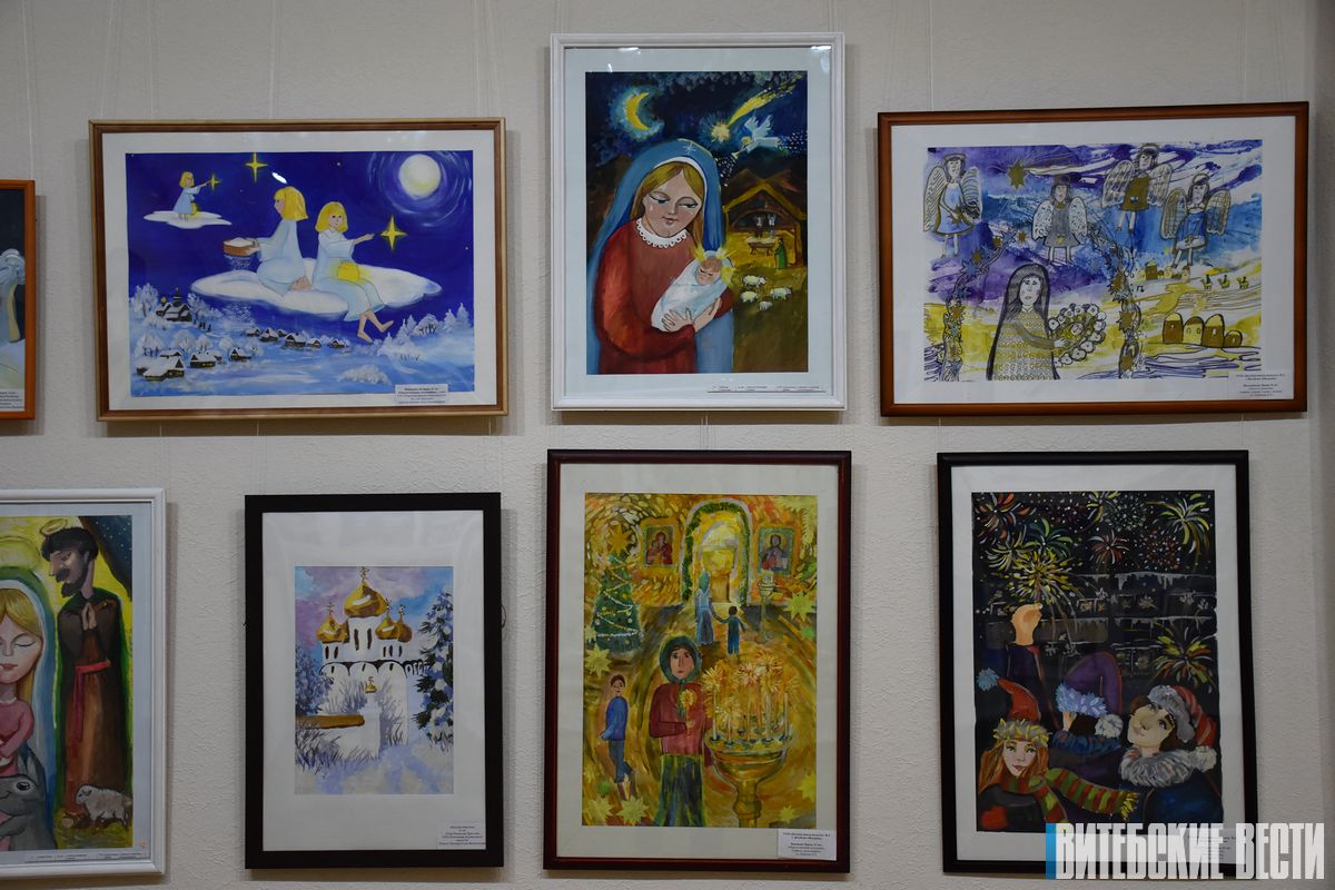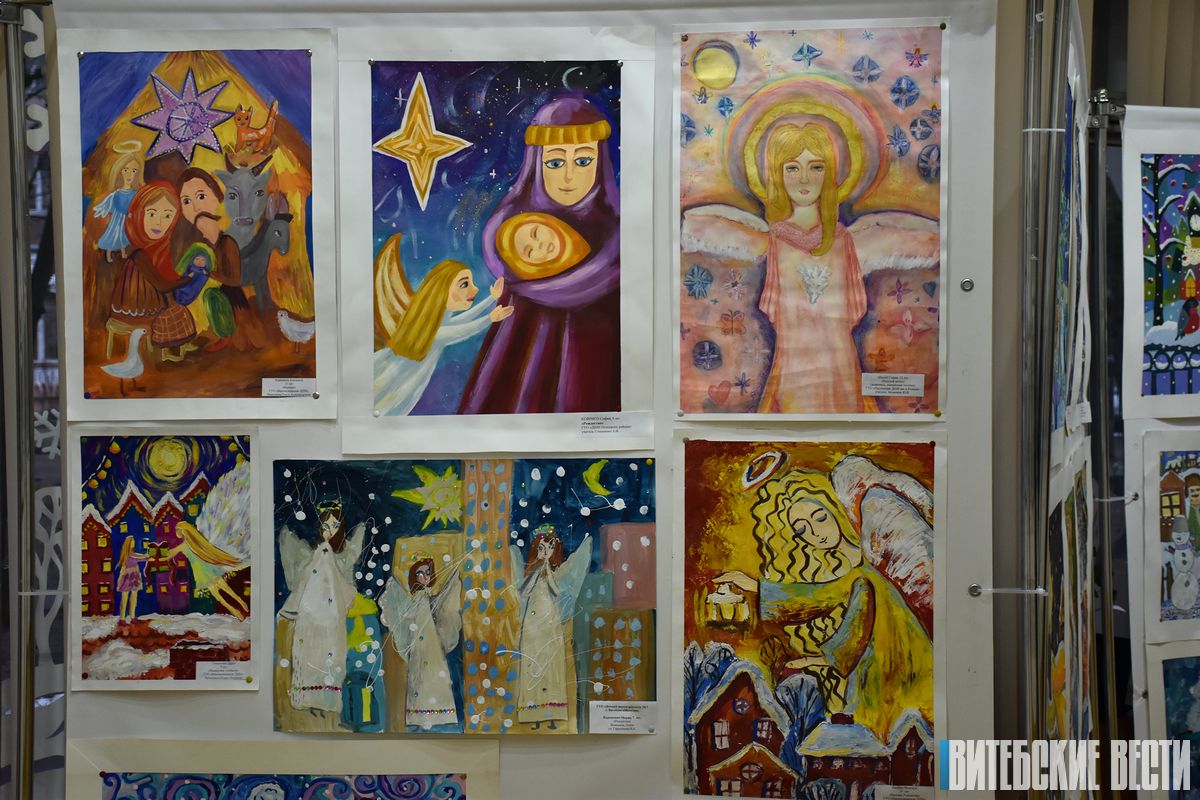 В этом году на выставке представлено 62 организации Витебской области. Изобилие тем, сюжетов, техник исполнений – участники подошли к выполнению работ со всей ответственностью. Из нескольких сотен работ 322 вместили выставочные залы Детской школы искусств №3 «Молодик» после отборочного тура. В основе сюжетов рождение Иисуса Христа, ангелы, рождественские библейские сюжеты, а также дети, рисующие себя и то, как они отмечают зимние праздники.