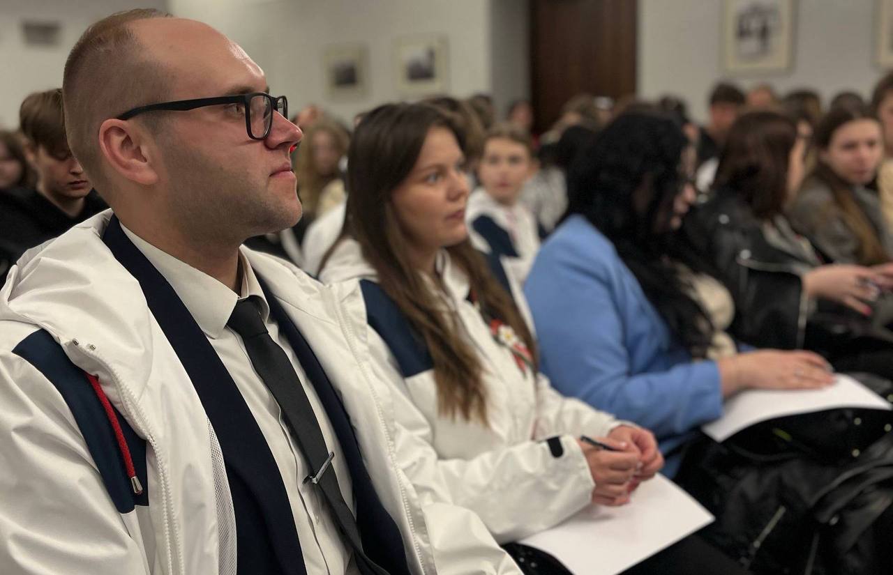 День в Бресте для делегации начался с продуктивной диалоговой площадки, где активисты БРСМ встретились с местной молодежью. Ключевым событием этой встречи стала областная просветительско-патриотическая акция «Диктант Победы». Участники проекта вместе проверили свои знания по истории Великой Отечественной войны.
