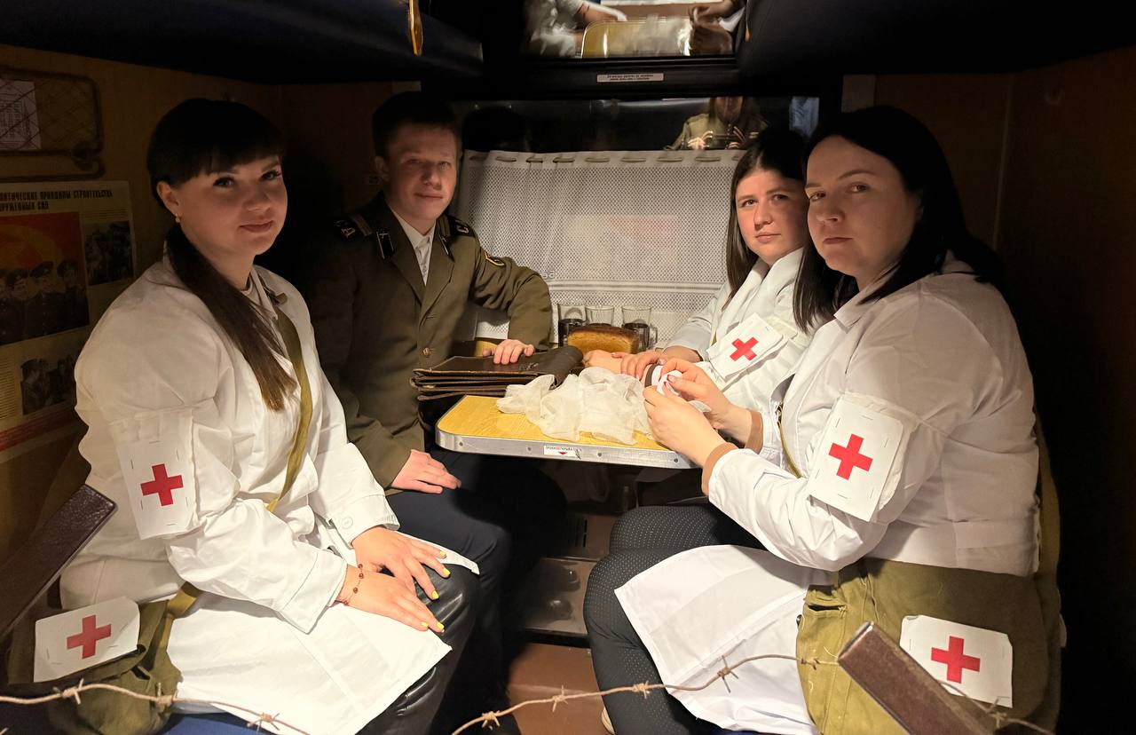 Пока поезд «Маршрута Памяти» уверенно мчал из Витебска в Брест, в его вагонах студенты и работающая молодежь БРСМ Витебской области представили визитные карточки на военную тематику в рамках конкурса «Воевали наши деды». Звучали стихи, трогательные песни, пронзительные истории из семейных архивов, разворачивались миниатюрные театральные постановки.