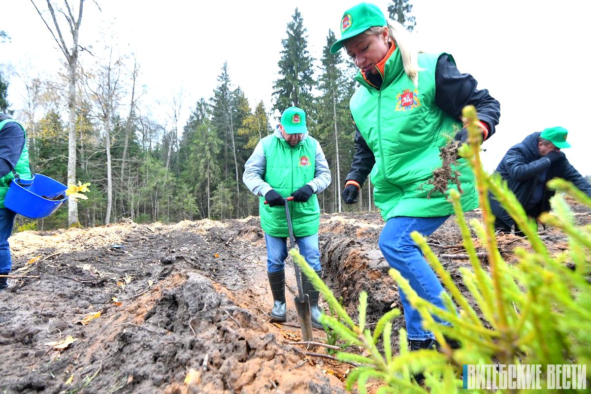 Здесь, в рамках акции "Дай лесу новае жыццё!" будет высажен смешанный лес на территории в 0.9 га. Более 4,5 тыс. саженцев дуба, березы и ели.