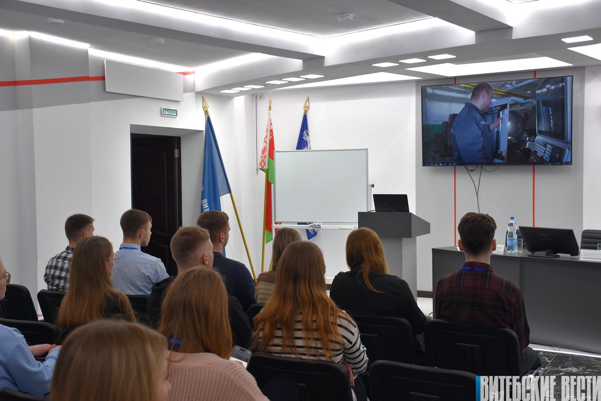 После ознакомительной экскурсии молодые люди просмотрели видео о работе завода, приняли участие в тренинге «Твои возможности», который проводила старший преподаватель кафедры психологии ВГУ имени П. Машерова Елена Милашевич.