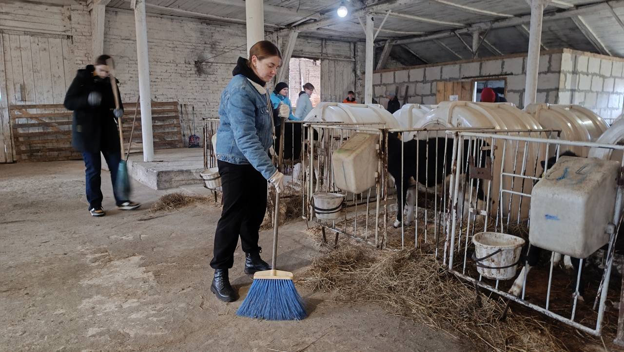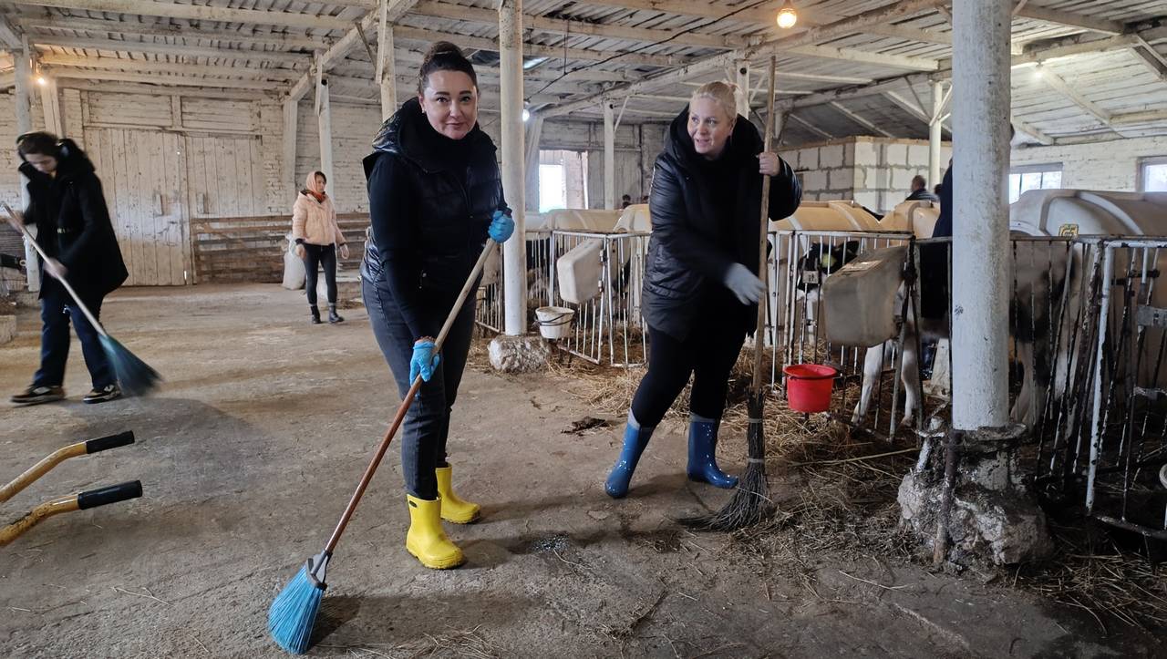 В субботнике участвуют первый секретарь областного комитета БРСМ Жанна Нарицына, начальник отдела идеологической работы и по делам молодежи Браславского райисполкома Наталья Спиридонова и первый секретарь местного РК ОО «БРСМ» Надежда Золотуская. Участники акции наводят порядок и благоустраивают территорию фермы.