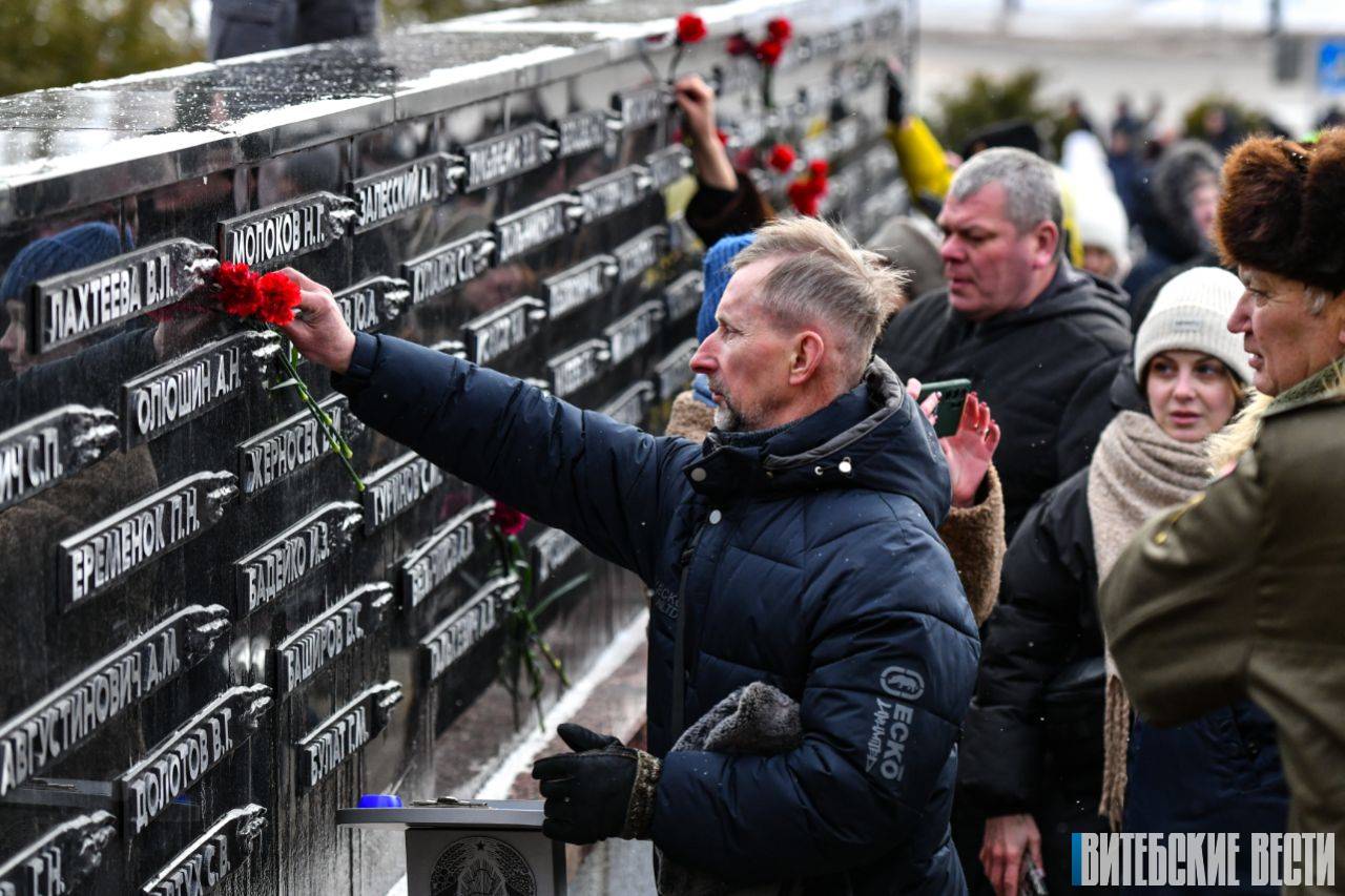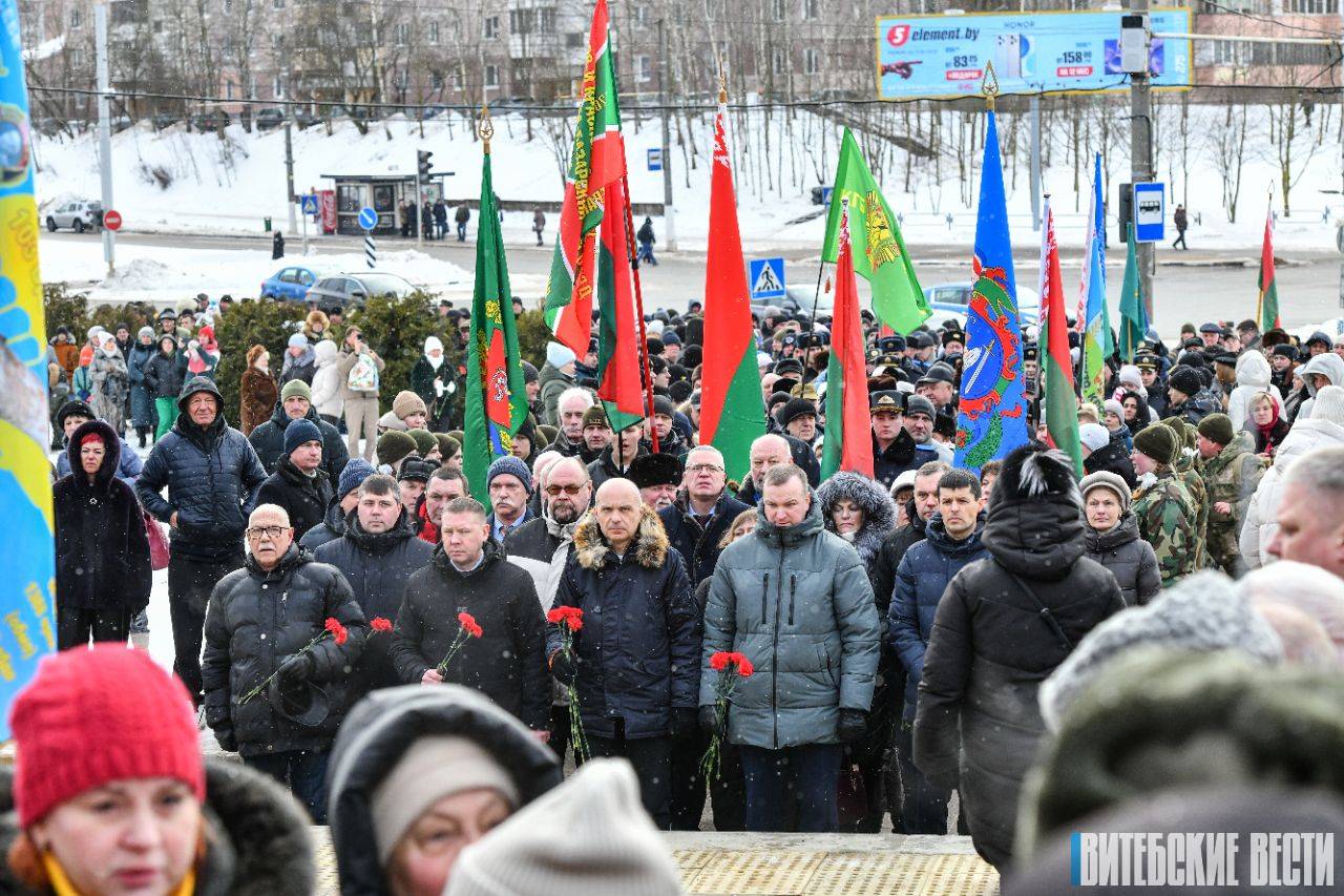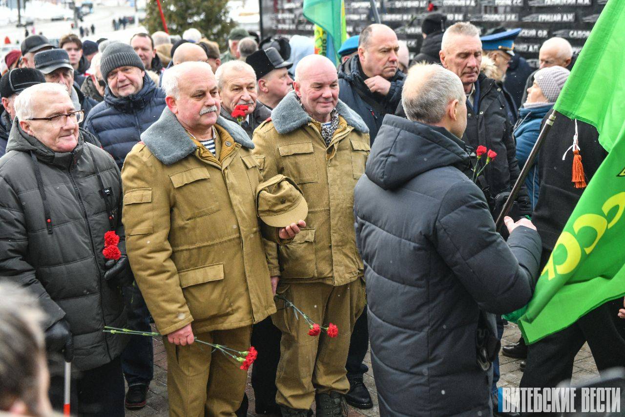 Заместитель председателя облисполкома Вячеслав Дурнов отметил, что через горные перевалы и раскаленные пески Афганистана прошли более 30 тыс. белорусов. Они с честью исполнили свой долг, защищая южные рубежи Советского Союза, проявляя мужество и самоотверженность. Мы чтим подвиги отважных десантников 103-й витебской дивизии, летчиков 339-го военно-транспортного авиационного полка, которым пришлось не только выполнять боевые задачи, но и возвращать на Родину тяжелый груз. Вспоминаем тех, кто начинал свой путь в небо в витебском аэроклубе им. А. Горовца. Придвинский край потерял в той войне 160 человек.