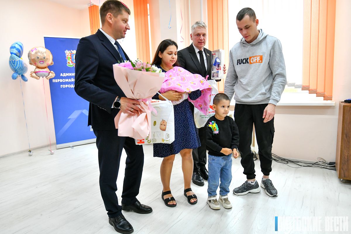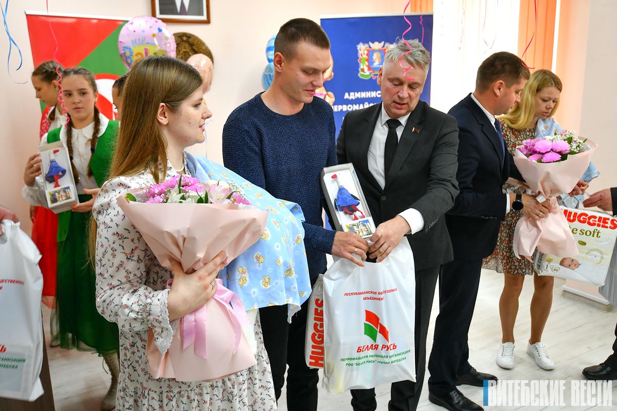 Счастливые семьи поздравили глава администрации Первомайского района Витебска Евгений Семёнычев и председатель Первомайской районной организации РОО «Белая Русь» Александр Каплевский.