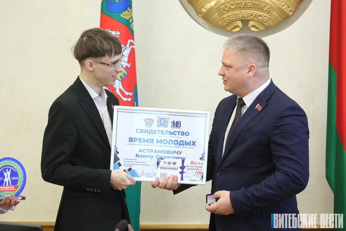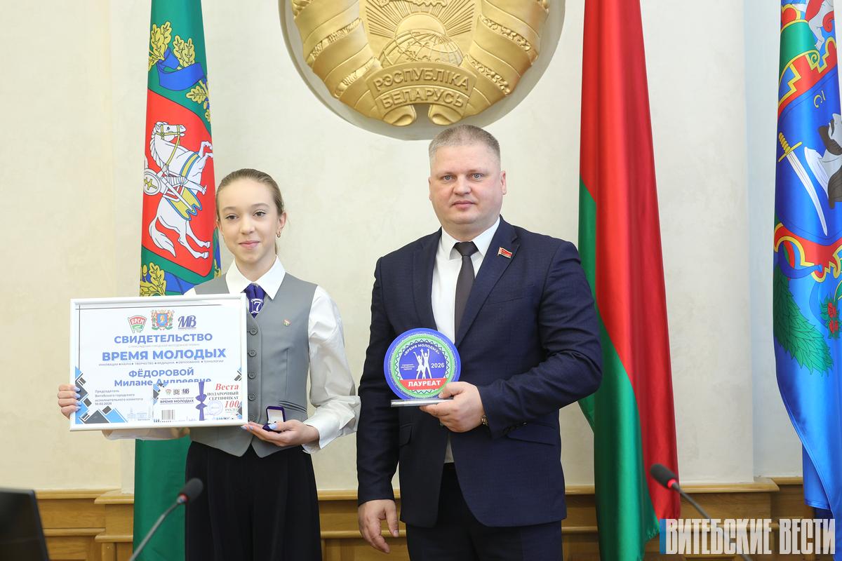 Также заслуженную награду получили стипендиат специального фонда Президента по социальной поддержке одаренных учащихся и студентов, талантливый молодой ученый, аспирант ВГМУ Анна Ефремова, победитель областного этапа конкурса «Студент года – 2025», студент ВГТУ Максим Репинский, победитель международных чемпионатов по профессиональному мастерству, учащийся Витебского технологического колледжа Алексей Лубов, мастер спорта международного класса по кикбоксингу, чемпион Республики Беларусь и обладатель Кубка мира Глеб Базанов, капитан команды КВН ВГАВМ, обладатель кубка «Студенческой весны» Александра Шевцова, лауреат многочисленных международных вокальных фестивалей, гимназистка Милана Фёдорова, победитель республиканского конкурса «SuperПРОФИ-2025» в социальной сфере Ксения Гловко, учитель истории, под руководством которого ученики побеждают на республиканских олимпиадах Виктор Липский, журналист газеты «Витьбичи», победитель конкурса «SuperПРОФИ-2025» и лауреат «Золотой Литеры» Анна Леонькина.