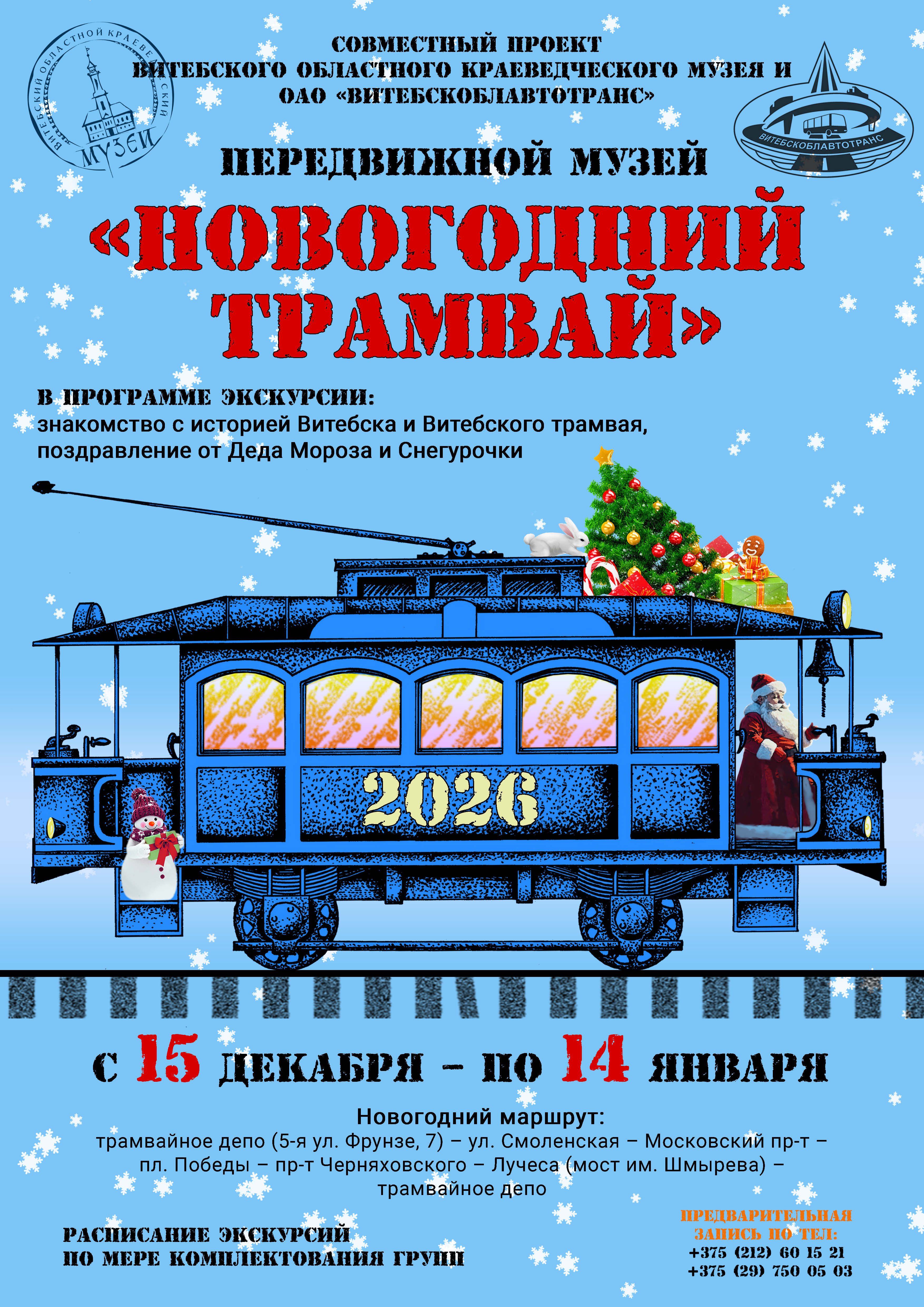 В программе – знакомство с историей города на Двине и Витебского трамвая, интересные рассказы о праздновании Нового года в нашем областном центре в разные годы, поздравление от Деда Мороза и Снегурочки.