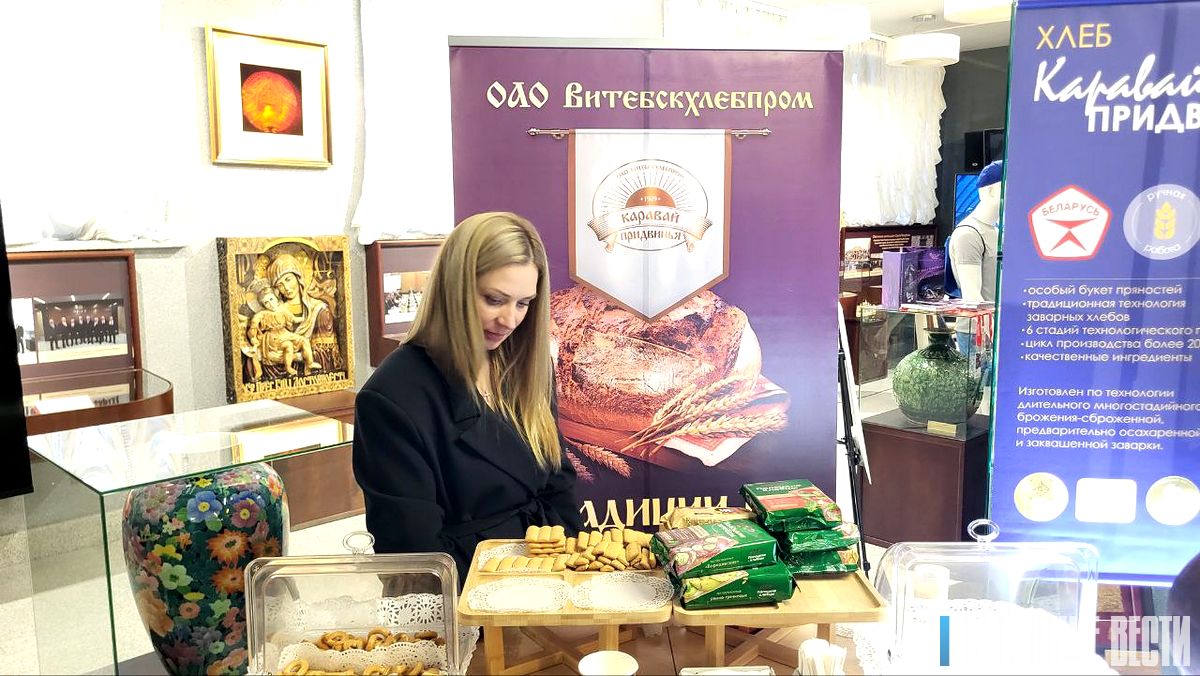 Второй блок выставки посвящен пятилетке качества. Презентуется продукция предприятий Витебщины, получивших награды в сфере качества – Оршанский льнокомбинат, ОАО «Витебскхлебпром».