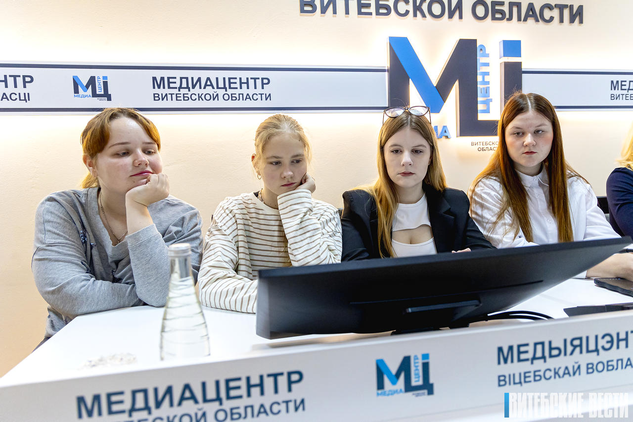 Витебские ребята поинтересовались у эксперта, как организована работа президентского пула, и можно ли в него попасть молодым журналистам, как развиваются современные СМИ в эпоху цифровизации, почему журналисту важно быть смелым и честным.